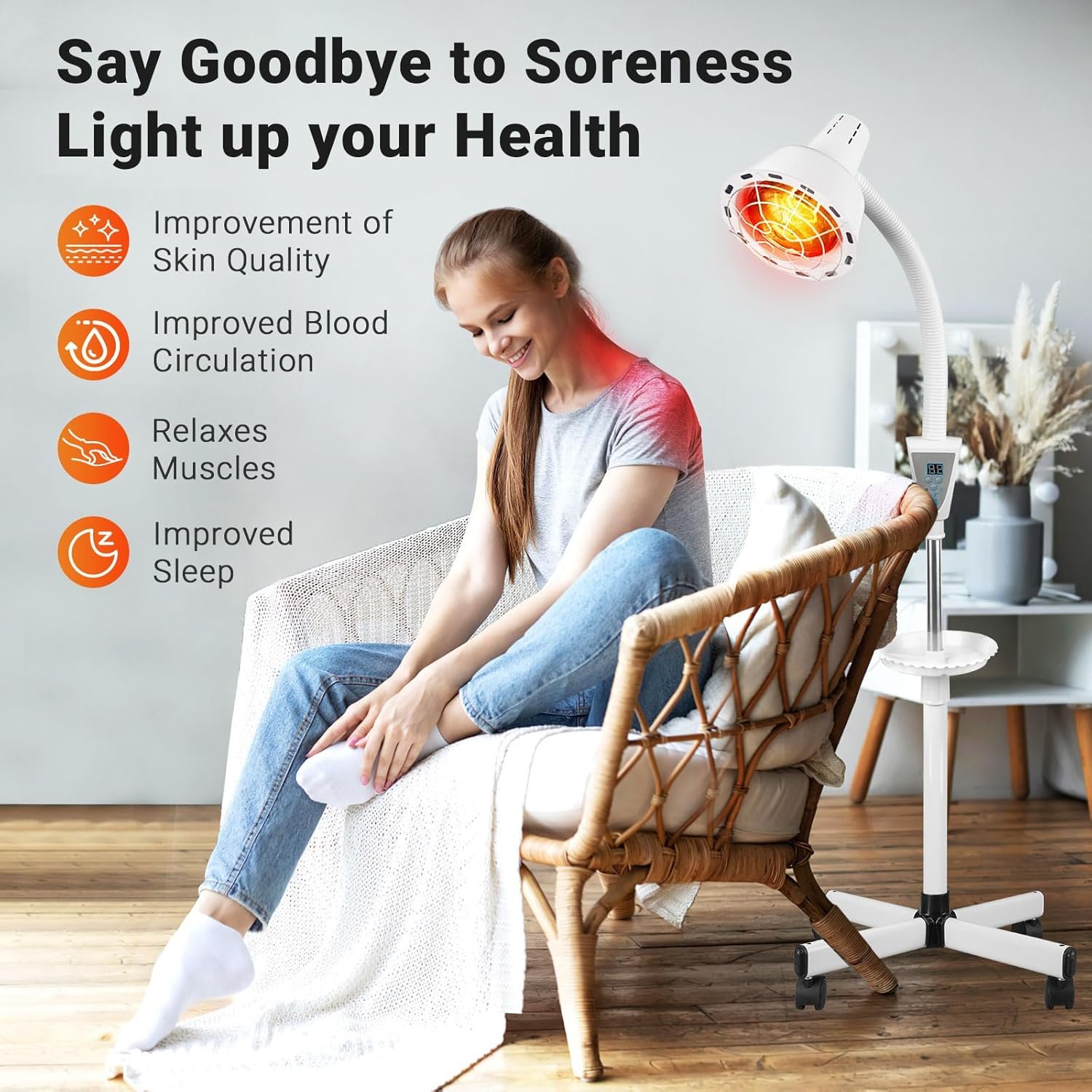 This lamp has found a spot in my daily life. With its adjustable stand, I can direct heat precisely where I need it. The warmth does wonders for my tired muscles, especially after a long day. Its design suits any corner of my room. As I sit and relax, the gentle light adds a meditative touch to my evening routine. My back and neck, often tense, feel noticeably better. Using this feels like a small retreat at home. The soft glow invites an atmosphere perfect for unwinding.