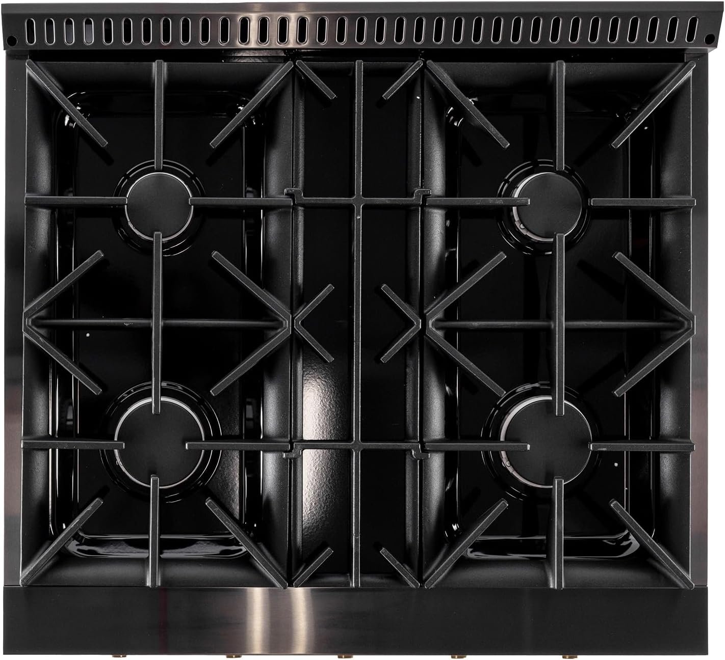 4-burner gas range includes two 15,000 BTU and two 9,000 BTU burners