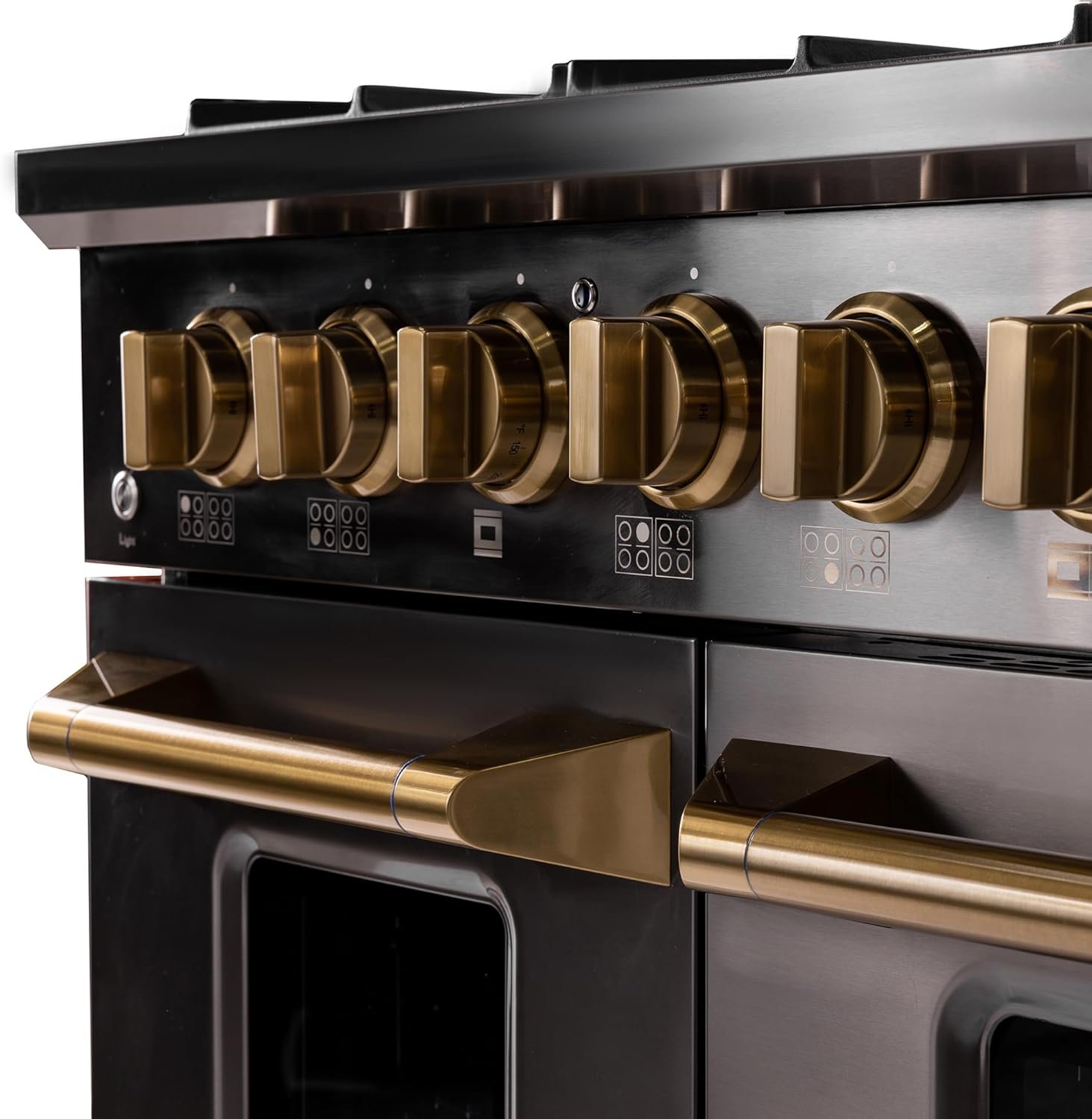 New Kucht Gemstone KEG Series – the epitome of luxury and style in your kitchen! With a sleek, darker stainless steel finish and gold assets, this range will elevate the look of your kitchen to a whole new level. This premium gas range features powerful burners, each manually controlled by gold knobs, allowing you to cook with precision. The heavy-duty cast iron grates provide a sturdy and stable surface for all your pots and pans, while the spacious oven offers plenty of room for baking, and roasting your favorite dishes. The shorter kickplate design unveils a fancy set of squared gold legs, matching the knobs and the handle. But it’s not just about the looks and performance – the Kucht KEG series is also built to last. Made with high-quality materials and designed to withstand the rigors of daily use, this range will be a reliable and durable addition to your kitchen for years to come.