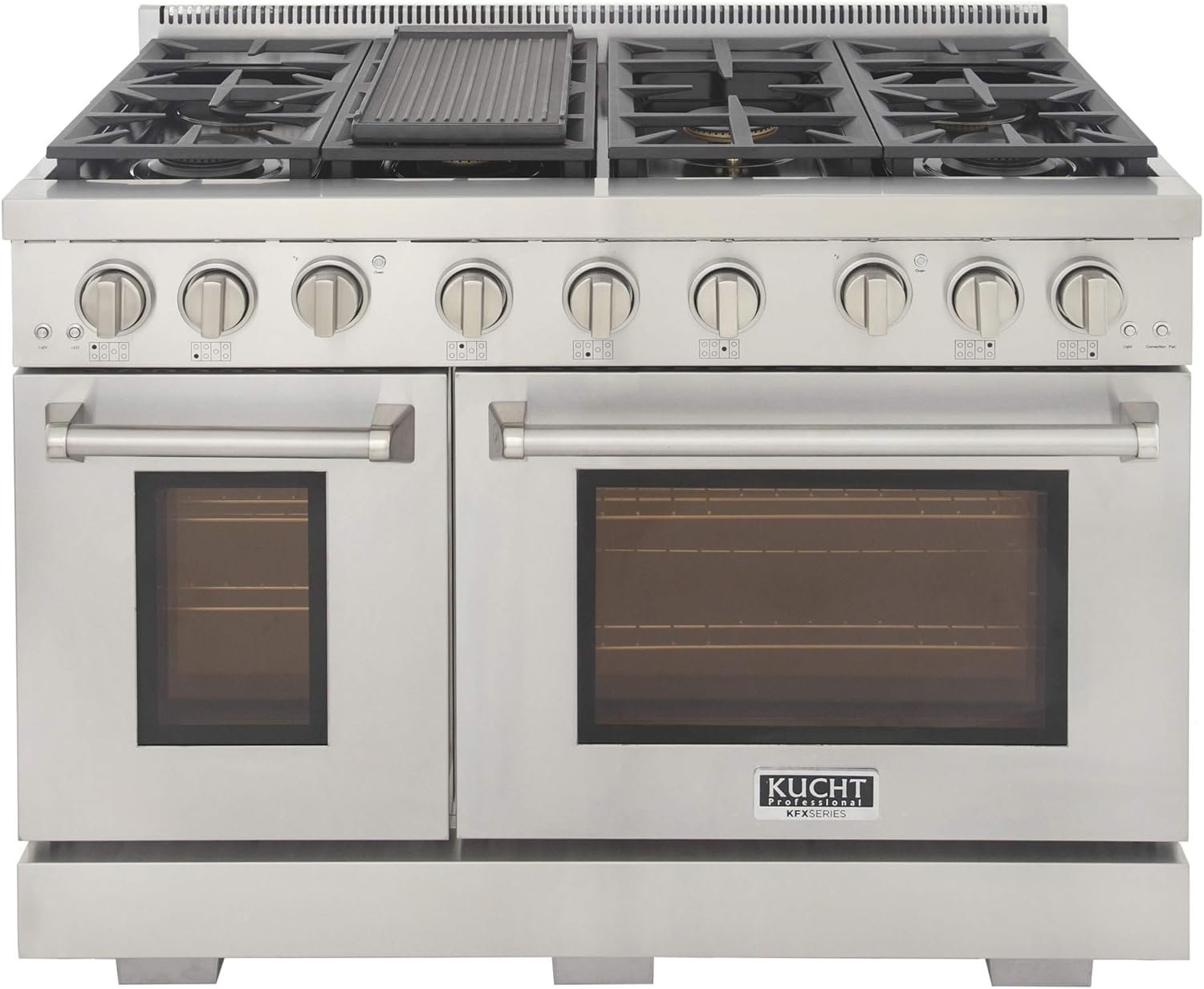 Introducing the new KFXx series New True Simmer Burners: Simmering tenderizes tough cuts, enhances flavors, and gradually thickens sauces and stews. Combining design, high performance, and safety, with a modern and elegant design for your kitchen, this 48 in. model provides greater capacity to cook several dishes simultaneously or for those larger pieces. The KFX model also comes with a reversible and removable grill/griddle that increases its versatility. Itβs equipped with a 25,000 BTU burner that provides evenly distributed heat and plenty of power to use a WOK or Paella Pan with professional results. The range topβs continuous rail design grates covers the 7 burners and allows you to move your kitchen utensils easily and safely. You can slide the heaviest pots and pans on the rails without even having to lift them. The new KFX4800X Gas Range offers you high-performance tools to bring your any recipe to life.
