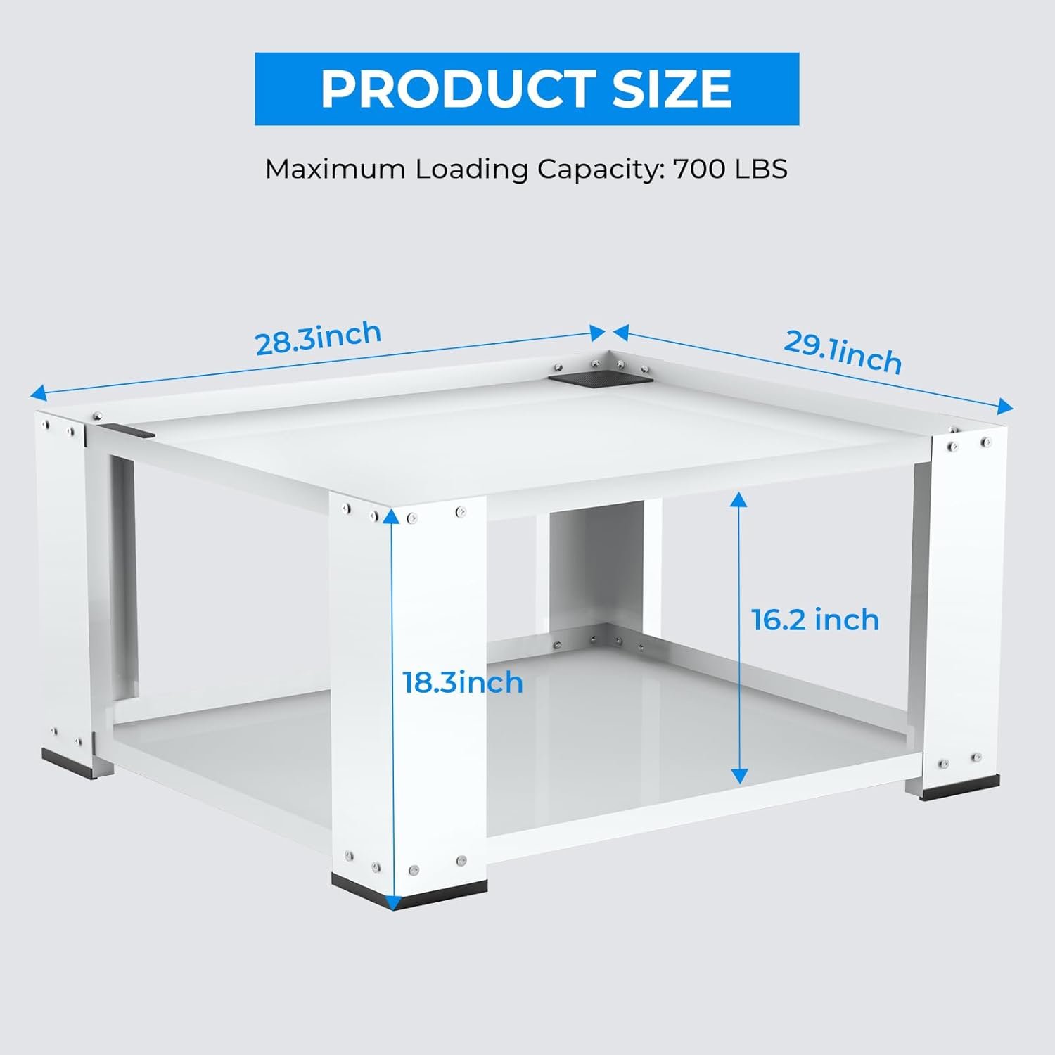 【Robust Stability】Engineered for durability, laundry pedestal for washer and dryer is constructed from heavy-duty and high-quality steel. The widened legs, coupled with dual solid panels, enhance stability, making it capable of supporting up to 700LB. Say goodbye to wobbling and ensure a secure laundry setup.