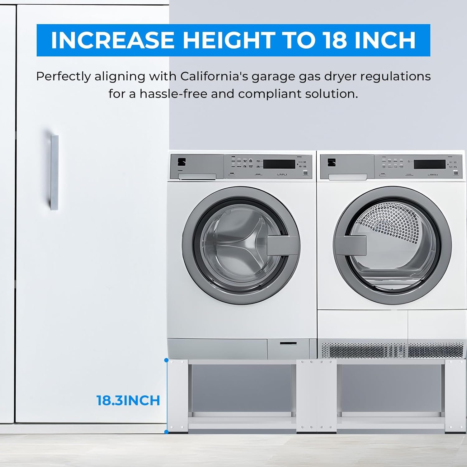 【18.3 Inch Height Washer Dryer Pedestal】Elevate your laundry experience with our 18.3-inch height elevation pedestal. No more bending, alleviating back pain and meeting CA code requirements for garage dryer installations. Enjoy a comfortable and ergonomic laundry routine.