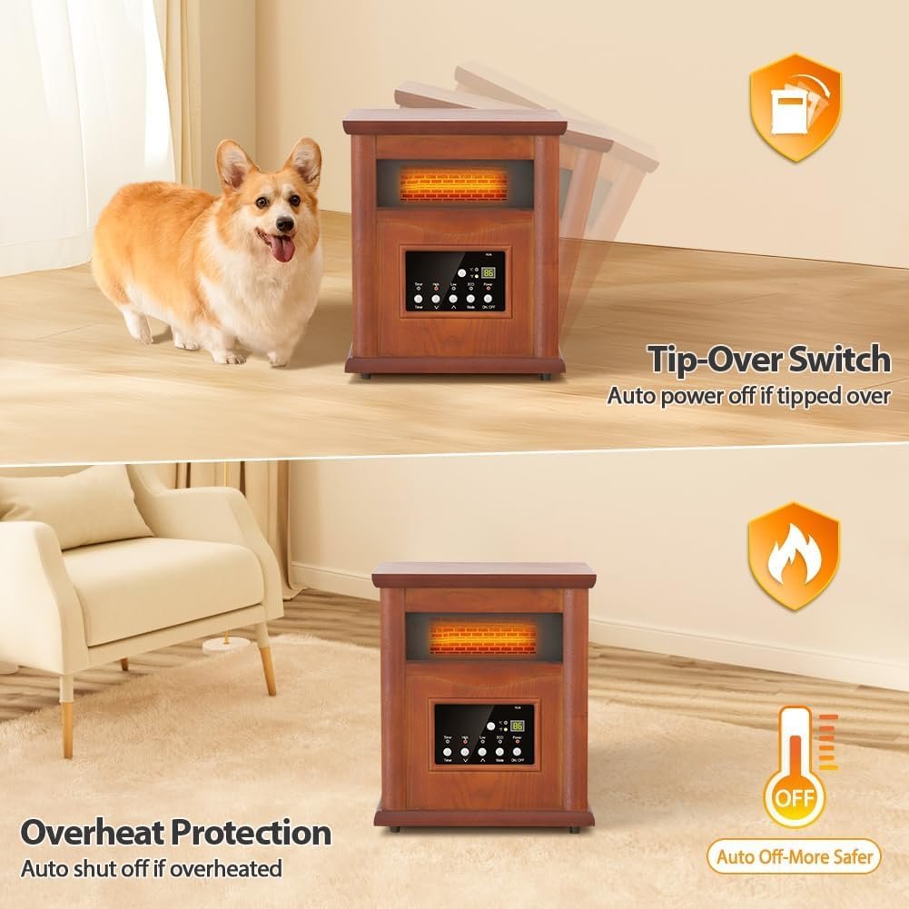 LifePlus Electric Infrared Space Heaters for Indoor Use, 1500W Box Space Heater with Wood Frame, Remote Control 12H Timer and 3 Heating Mode, Multiple Security Protections, for Living Room Home Office