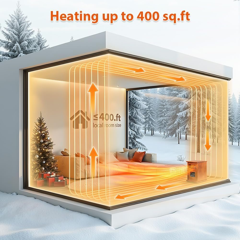 【Quartz Infrared Heating】The space heater with an infrared heating element of 1500w will quickly warm your large room, penetrate deeply, and effectively keep the humidity in the room without drying out the air.