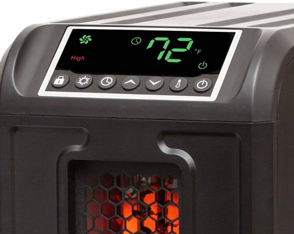 Enhanced Functions: Equipped with 3 superior wrapped quartz infrared heating elements and offering 3 heat settings low, high, and ECO; Features a 12-hour programmable timer, extra-large LED display, and thermostat control system for enhanced convenience and control