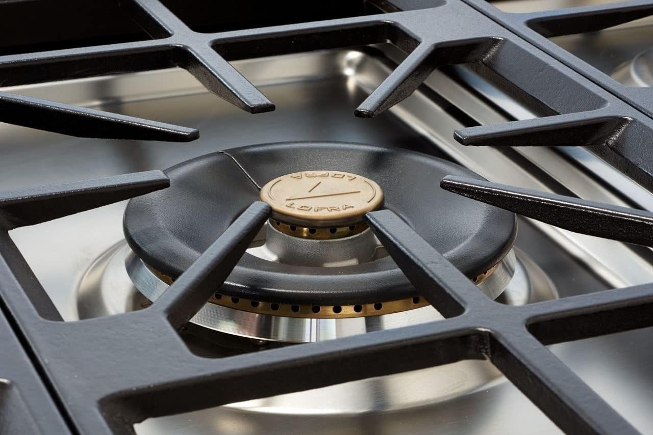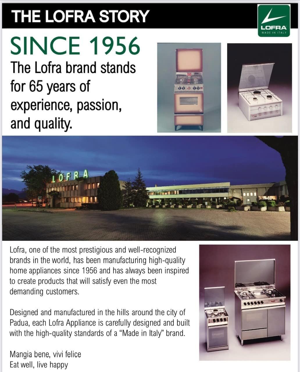 Made in Italy Lofra Maestro Series 36 Inch Freestanding Dual Fuel Range with 5 Brass Burners, With 9 Cooking Modes. The doors are made up of three panels of glass, creating a semi-sealed chamber and a second chamber with an air current. It dramatically reduces the external surface temperature of the oven ensuring safety and reducing energy consumption. Cooling fans prevent hot air from damaging the range controls. Cold air enters the oven door from below and warm air vents out through a slot above the handle. It all began with the passion and intuition of the Lovato brothers, who in 1956 started to manufacture pots, and led Lofra to the creation of the CURVA line, their dual oven cooker’s award-winning design. Today Lofra continues to manufacture high ranges and built-in luxury appliances to meet the needs of the most sophisticated customers.