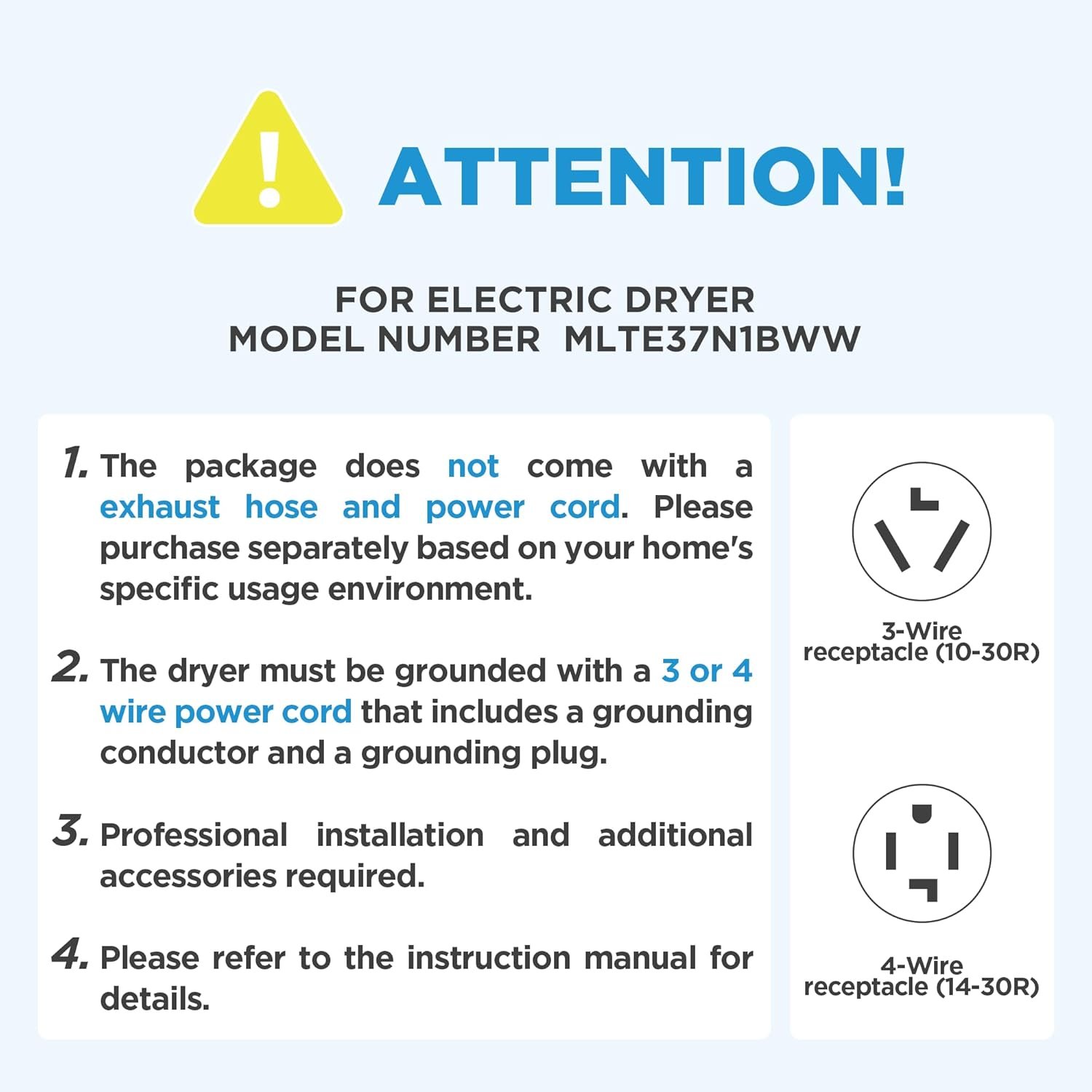 Sensor Dry and : A sensor detects when your clothes are dry and automatically stops the dryer saving energy. γPower cord should be purchased seperately and voltage requirement: 240V.γ