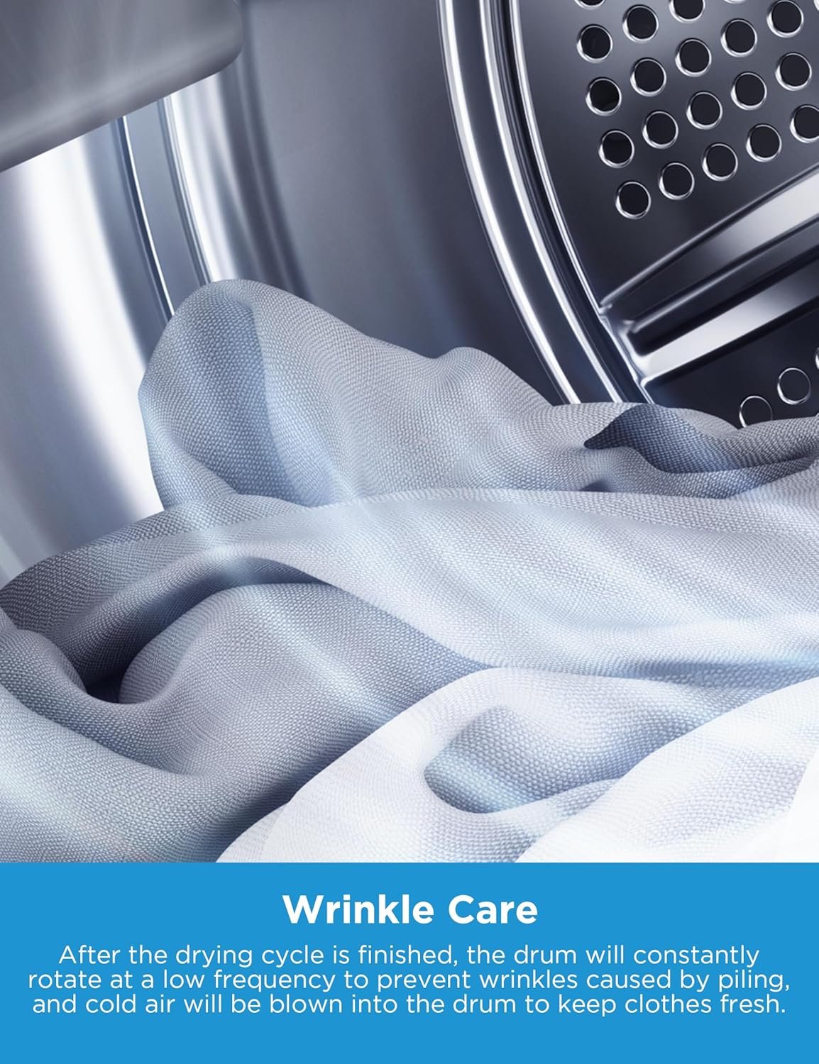 Wrinkle Care: Reduces wrinkling by providing extra tumbling in unheated air at the end of the cycle.