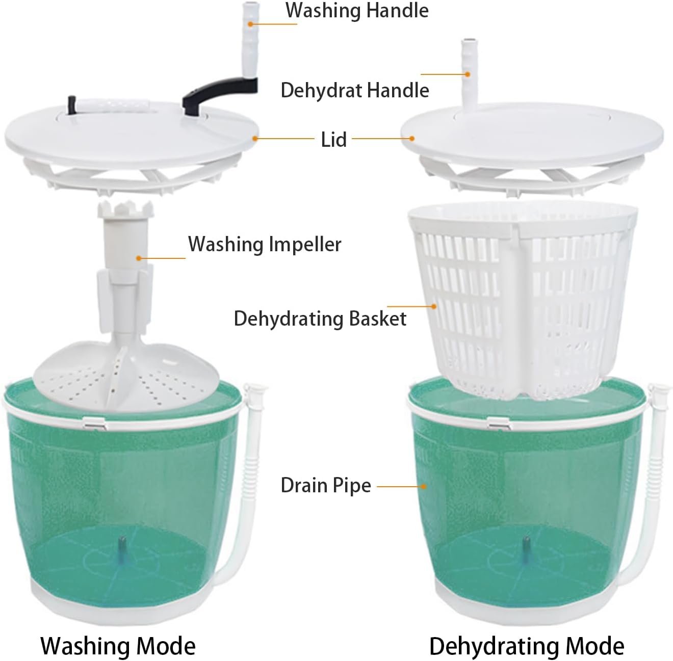 🧺【High Efficiency】With a 40-50% spin rate, this 2 in 1 manual washing machine is more efficient than other manual dryers.
