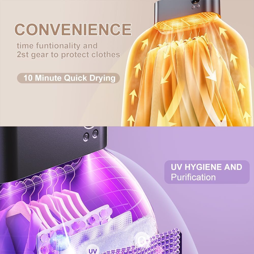 【Quick Dry】 MAX 3D convective heat cycle of the mini clothes dryer , heat wave runs through the entire clothes, can efficiently dry clothes in 10 min