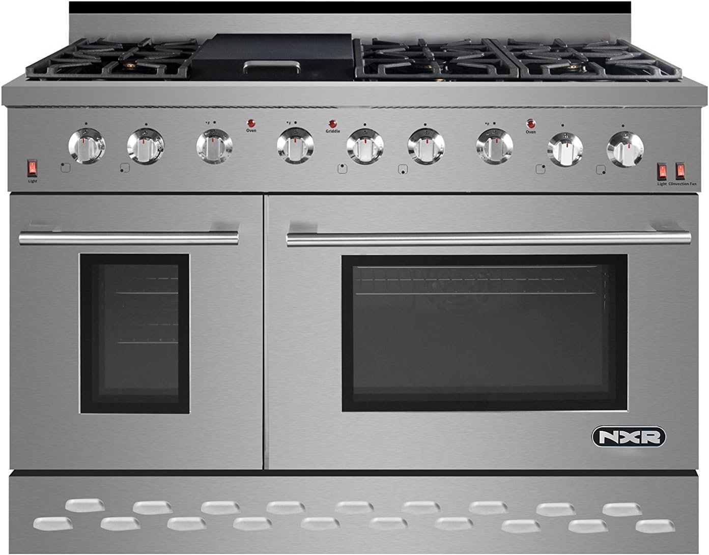 Oven Slides broke after 3 years and we are unable to find parts even on the NXR WebsiteThe Small oven from the start has never cooked well and maintains temperature very poorly.It was a budget buy at the time and was a regrettable choice looking back on it. basically it is a 48″ Dual oven range and only one side works well. The large oven has always seems to be a little cool about 30 degrees according to our thermometer. You get what you pay for in this case the oven’s are terrible. The range cooks well but the burners can be finicky at 100% and the igniter sometimes wants to keep igniting.