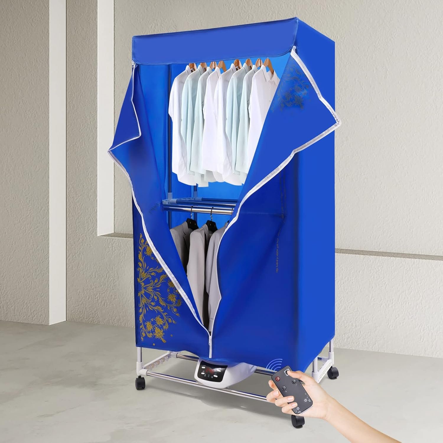 Are you bothered by the fact that your clothes are always not dry or smelly in the wet weather? Then you definitely need this folding remote control dryer. It has over-temperature protection so you don’t have to worry about any safety hazards of forgetting to turn it off. It works at less than 45 decibels and won’t disturb your work or rest when it’s running. In addition, it also has an intelligent remote control, which makes operation more convenient.