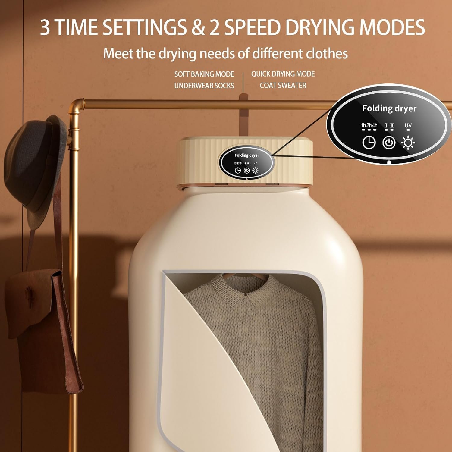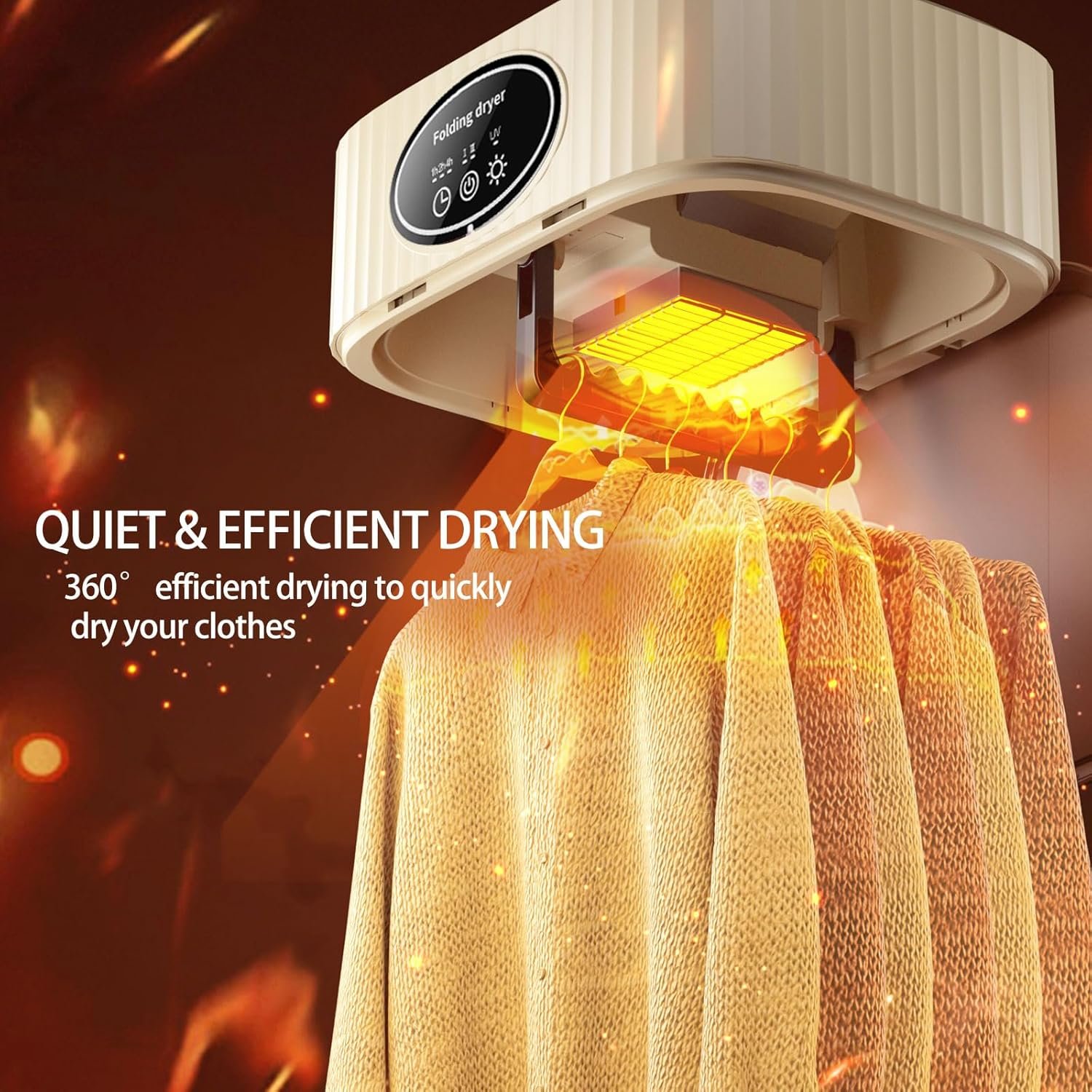 Quiet & Efficient Drying: Our compact portable dryers for laundry offers 360° efficient drying to quickly dry your clothes. Its low-noise design ensures a peaceful environment without disturbing your rest.