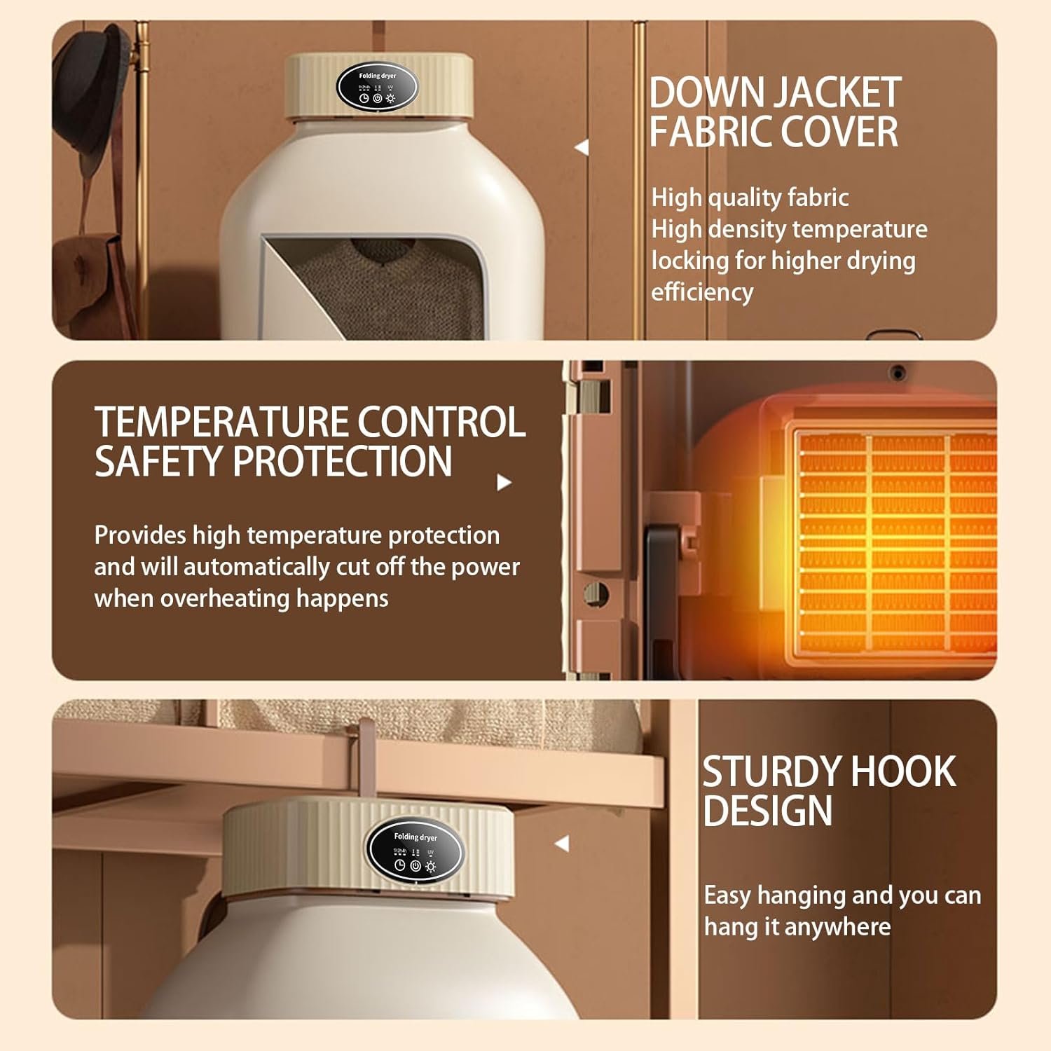 Sturdy Hook & Safety Features: The electric clothes dryer comes with a sturdy hook for easy hanging. It includes high temperature protection and automatic power-off for added safety and peace of mind.