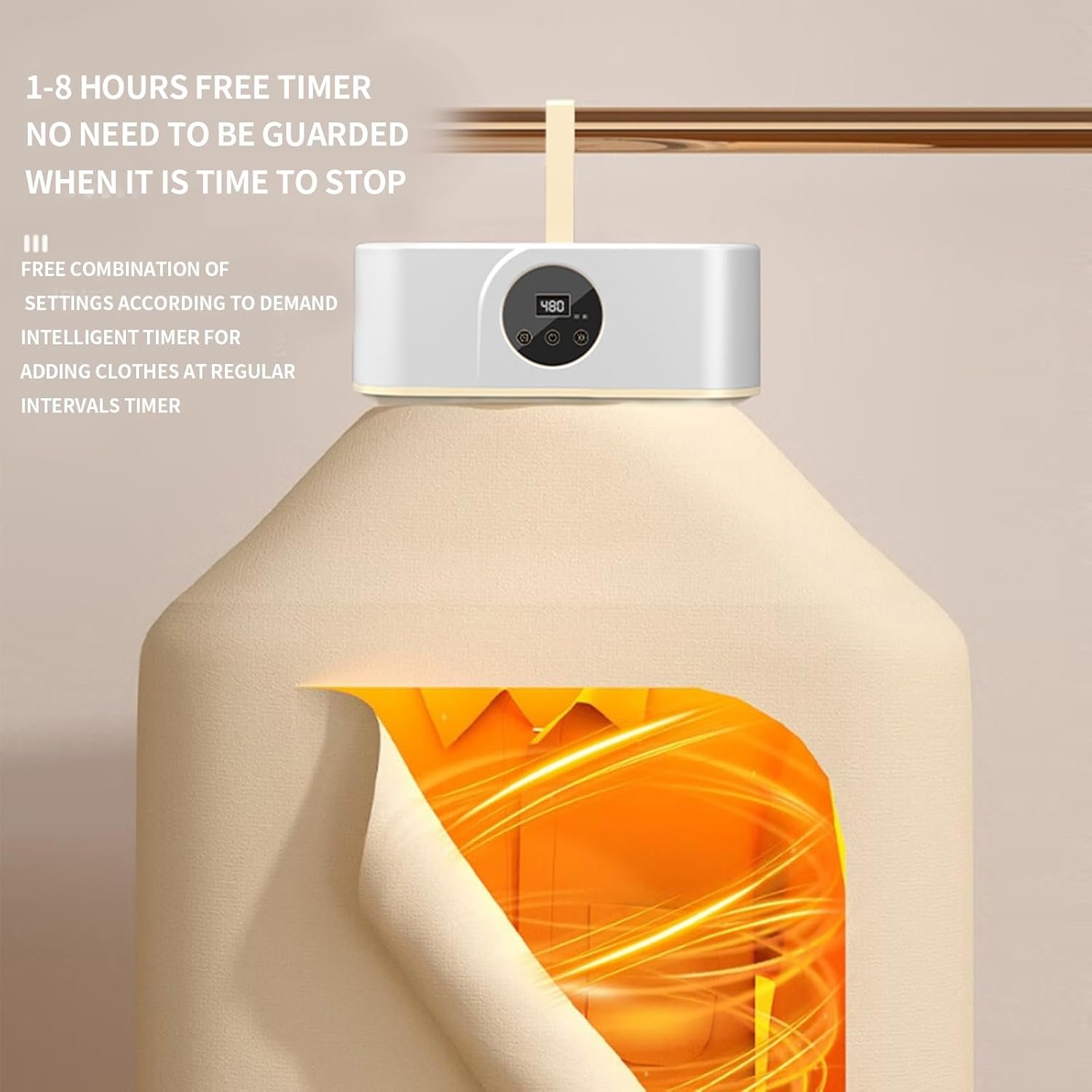 Quick-drying convenience: Dry multiple garments in as little as 20 minutes! Featuring a gentle mode for delicate fabrics (40-50° warm wind) with an 8-hour auto shut-off, plus a hot wind mode (50-60°) for faster drying of cotton, linen, nylon, and polyester. Perfect for small loads or a quick refresh.