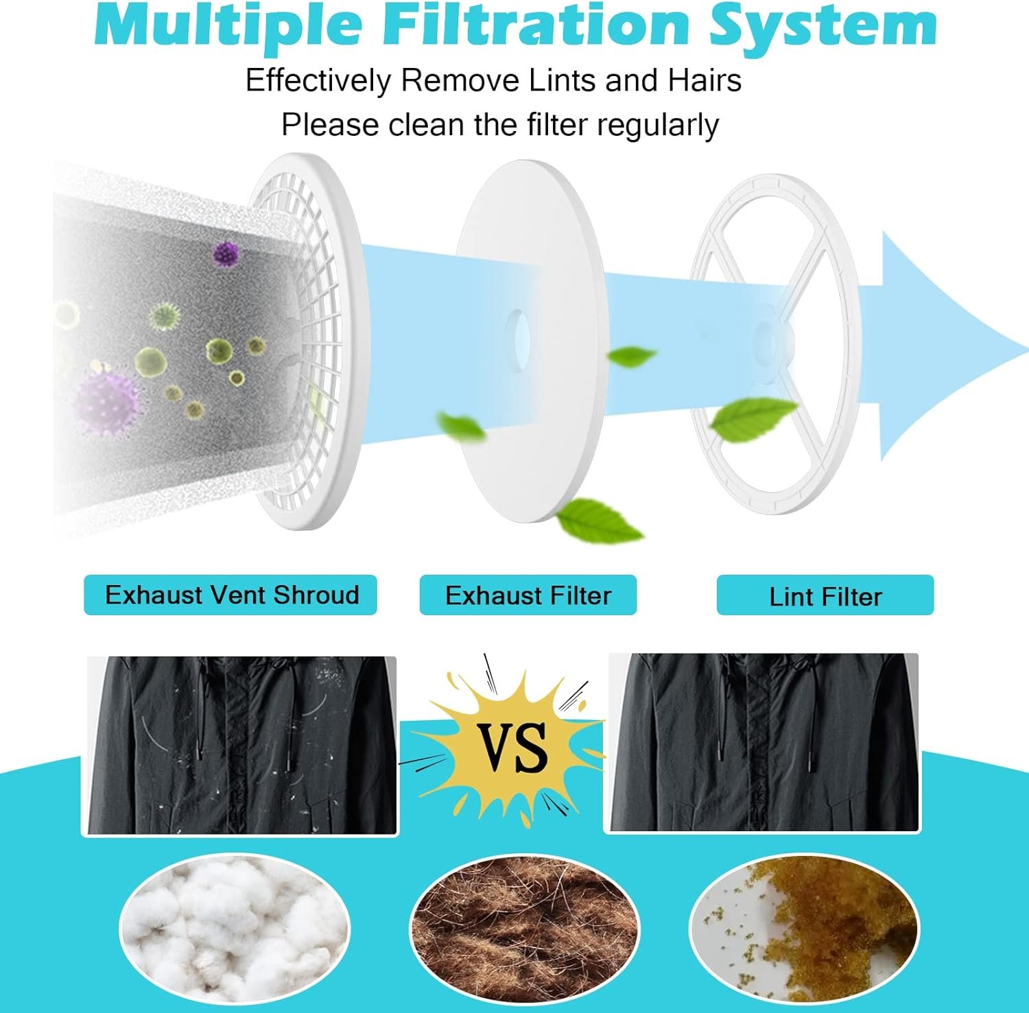 Remove lints and hairs with multiple filtration system