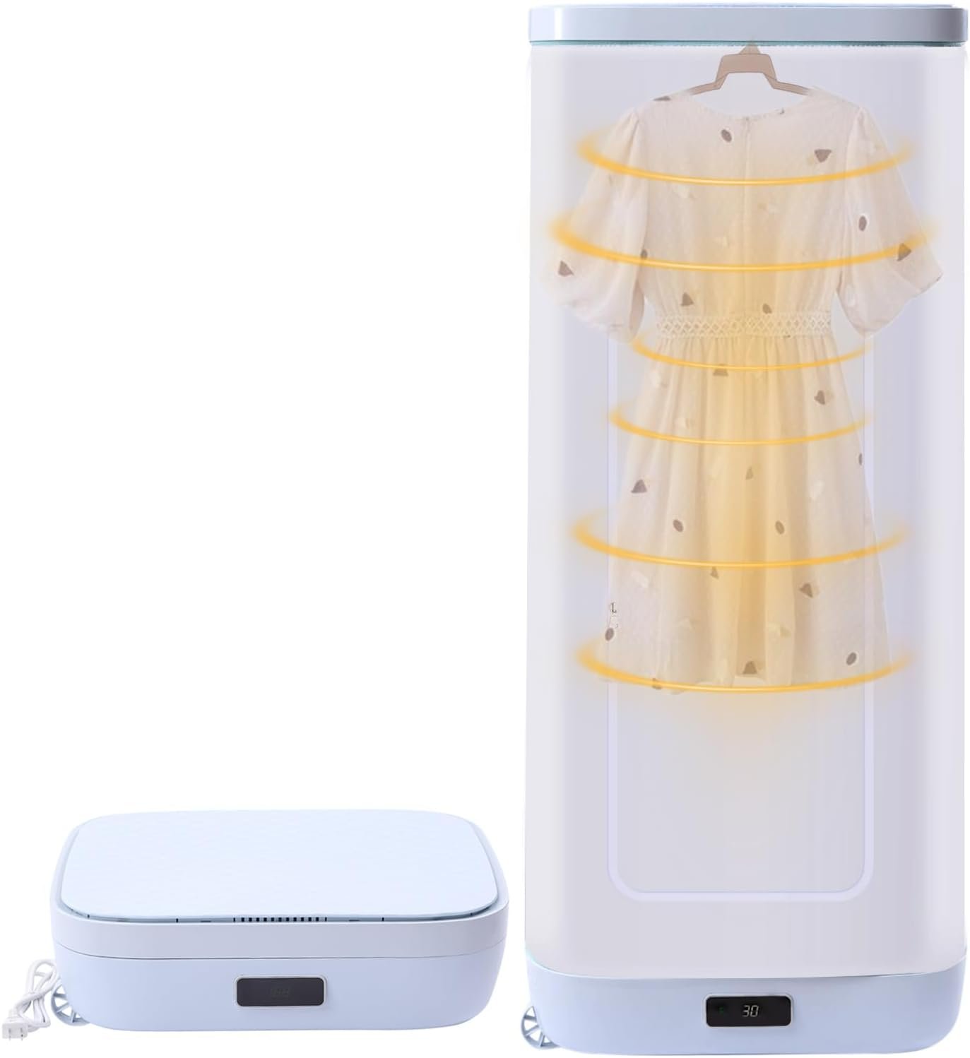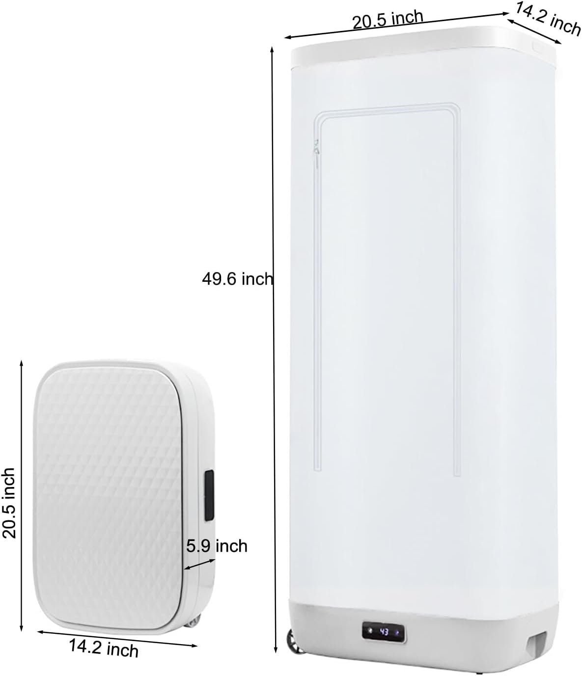 FOLDABLE AND SPACE-SAVING: This mini electric wardrobe dryer has a foldable design, which only weighs 9.04 lbs and measures 21 * 14 * 6 inches when folded, so it does not take up much space. You can easily put it in your closet, trunk, or suitcase, and take it with you wherever you go.