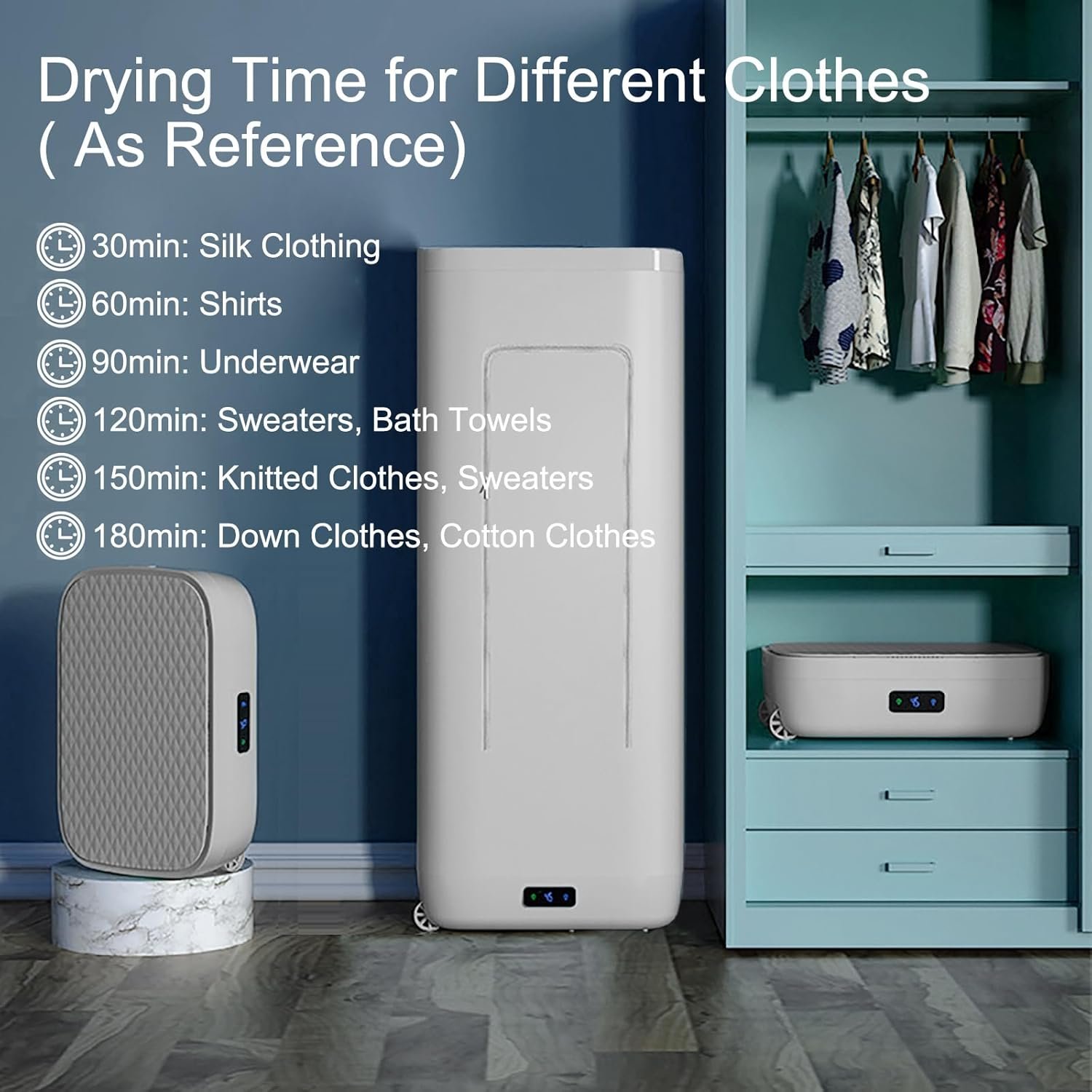 1. Please note that the drying time is for reference only, and the actual drying time depends on the degree of dehydration of the clothes and the external temperature.