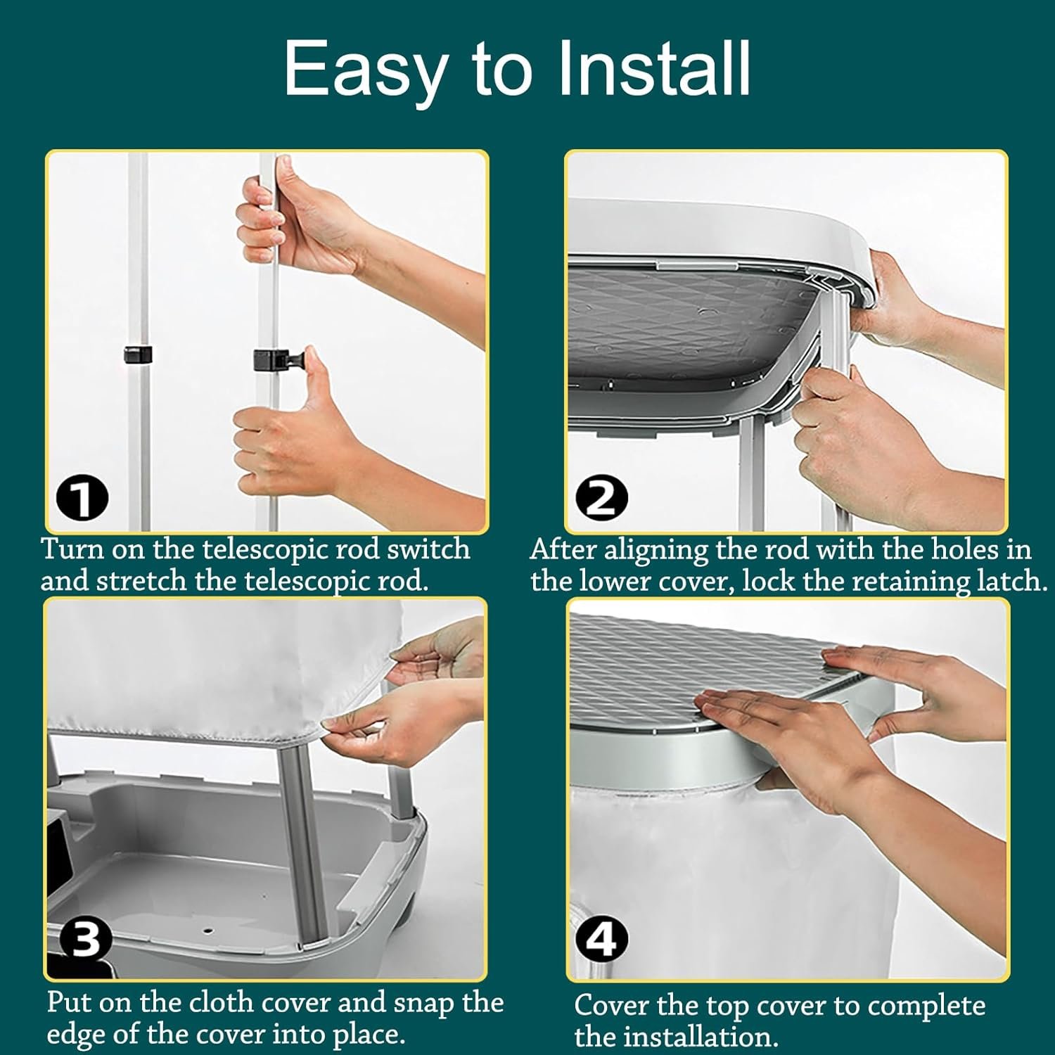 3. Put on the cloth cover and snap the edge of the cover into place.
