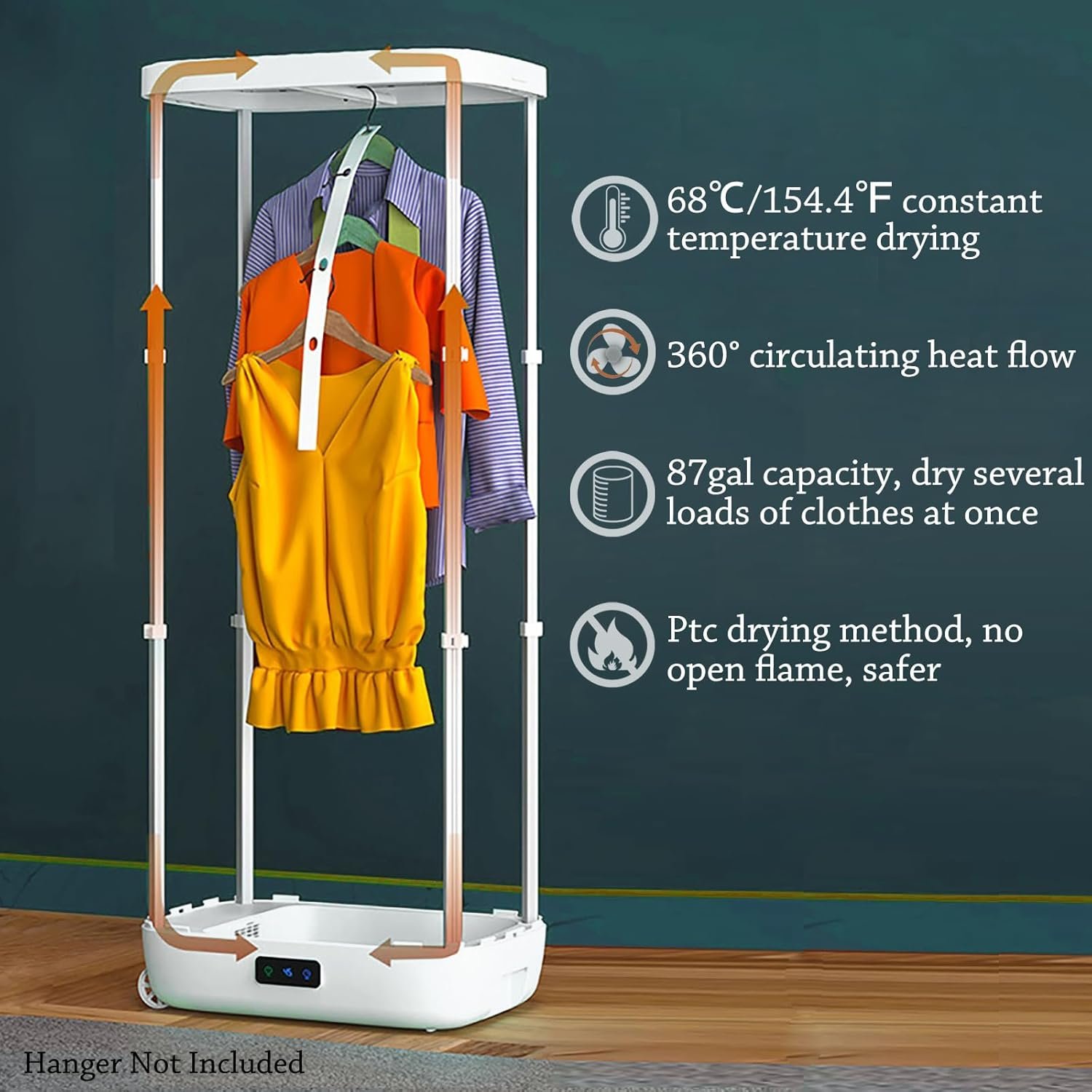 154.4℉ CONSTANT TEMPERATURE DRYING: This portable folding clothes dryer uses a 68℃/154.4℉ constant temperature drying mode, which can effectively dry clothes and protect the fabric from damage. It can restore the fluffy and comfortable feeling of your clothes and make you feel cozy and warm.