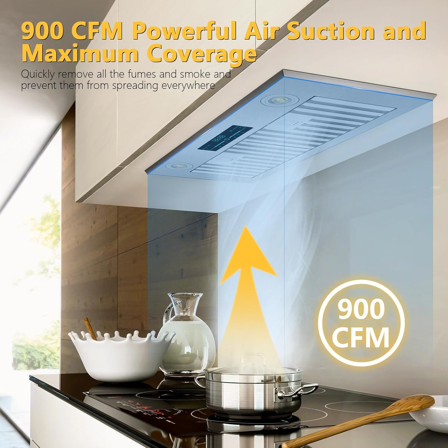 8 reviews for Range Hood Insert 30 inch, Ducted/Ductless 900 CFM Range Hood Insert with Charcoal Filter Included, Built-in Range Hoods Insert Stainless Steel With 4 Speed Gesture Sensing & 2 Pcs Adjustable Lights