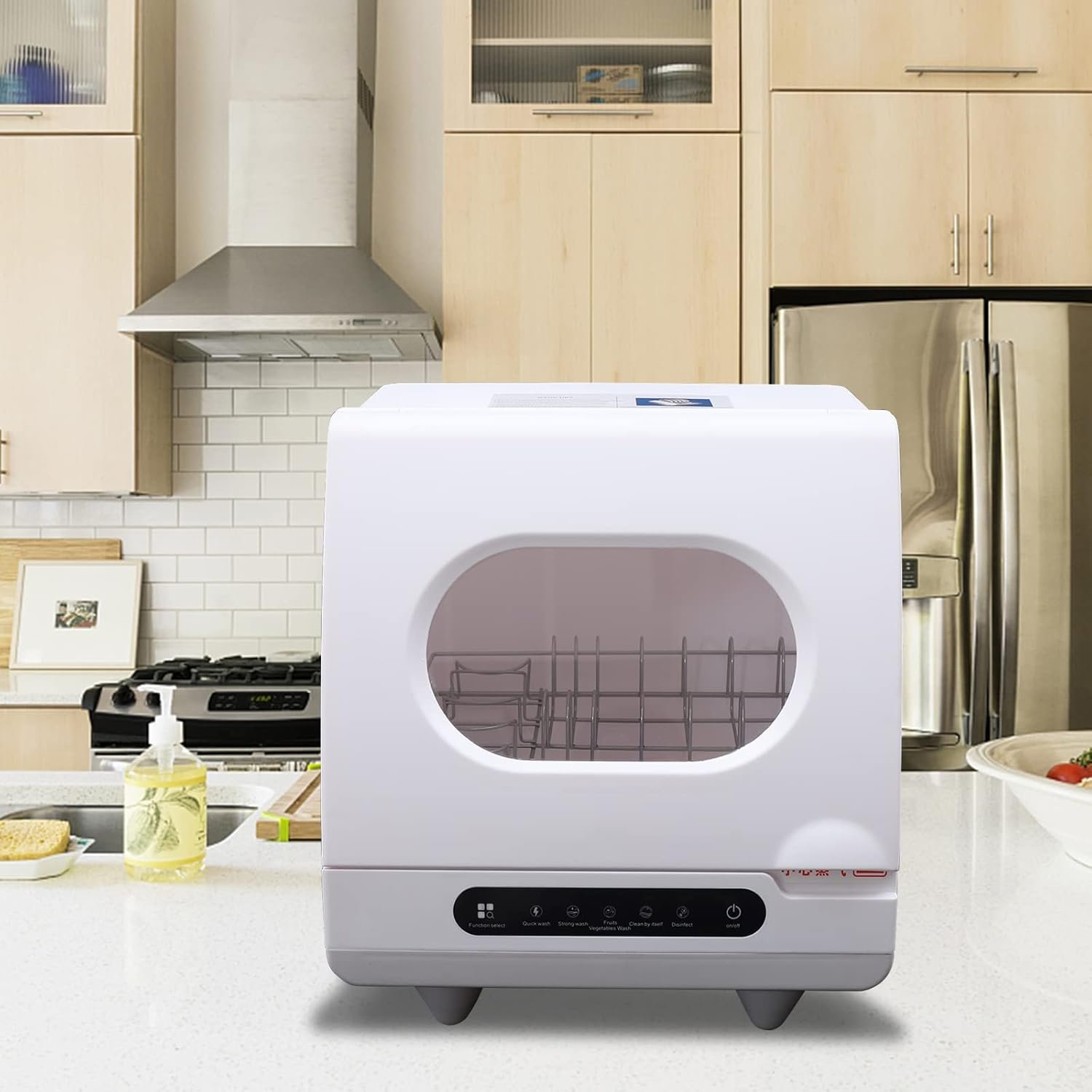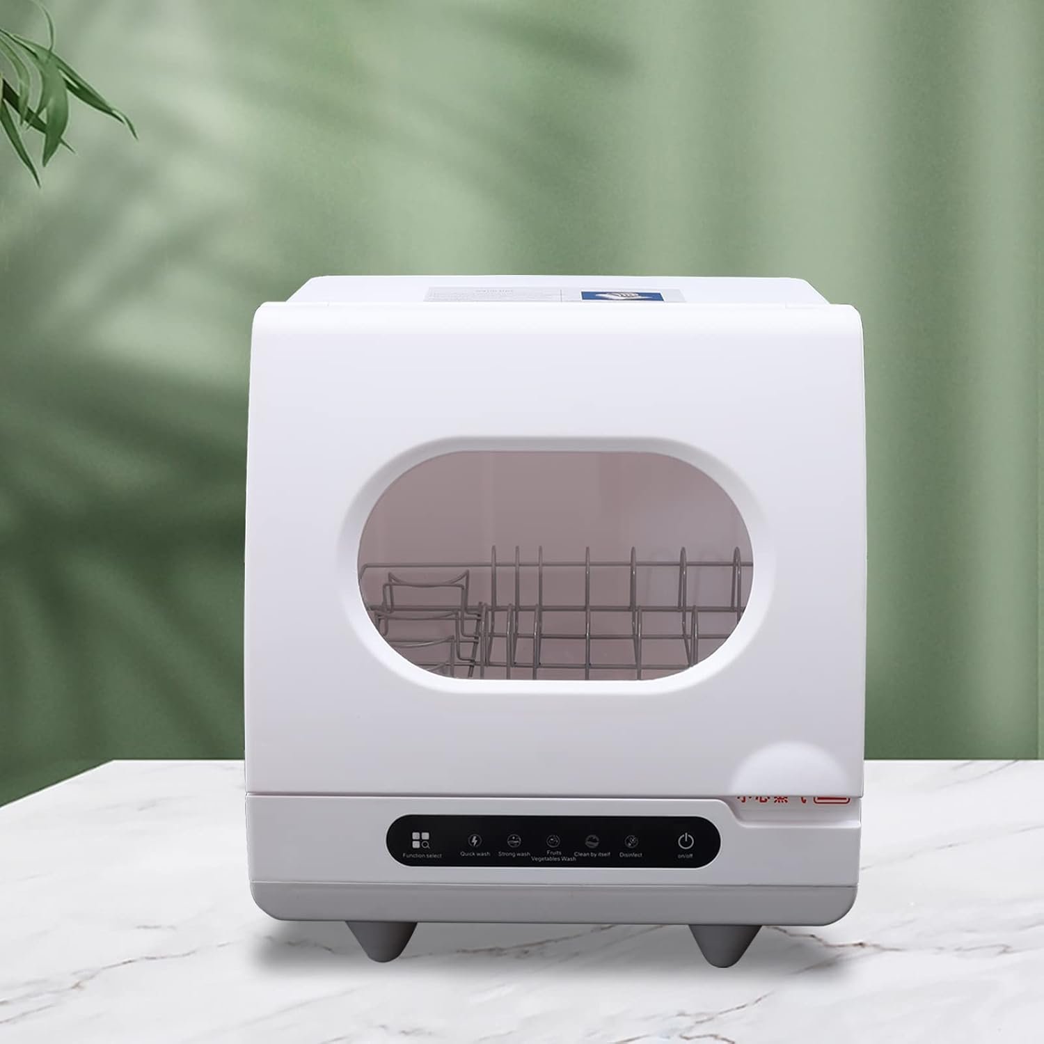Five Washing Programs: You’ll get full size dishwasher cleaning in a countertop sized compact unit that offers five wash programs – fast washing, strong washing, fruit and vegetable washing, self‑cleaning, and purification.