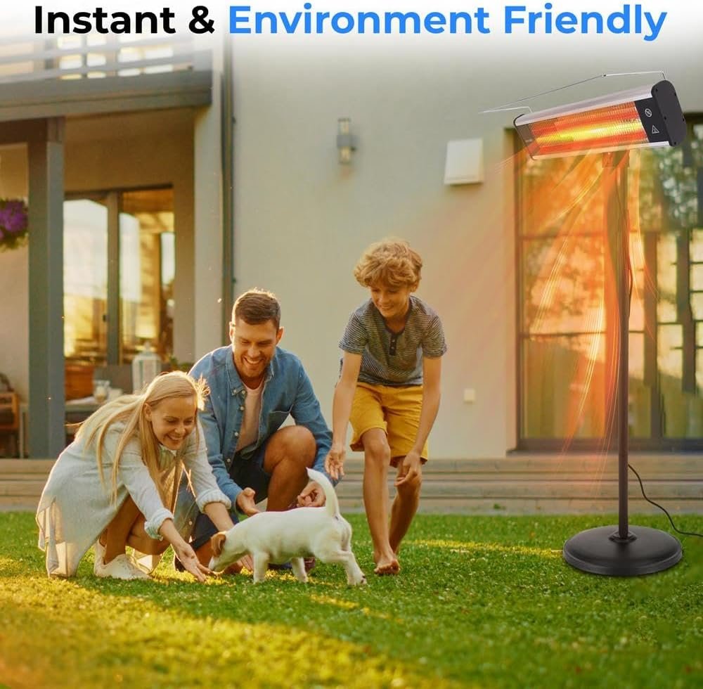 ENERGY EFFICIENT: This waterproof outdoor patio heater provides instant heat and directly transfers it to the body, making it highly energy-efficient. It doesn’t produce any odor and doesn’t require gas or propane, making it a convenient and eco-friendly option for your outdoor heating needs. It’s an ideal choice for your heat lamps outdoors.