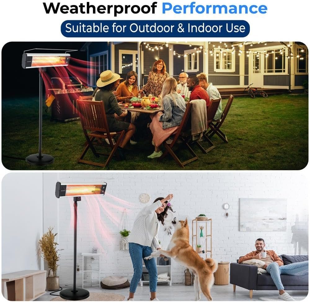 WATERPROOF AND DUSTPROOF DESIGN: With an IP65 rating, this outdoor heater features a waterproof and dustproof design that can withstand harsh outdoor conditions. The aluminum alloy frame and stainless steel base cover provide durability and make it the perfect heating solution for your patio, outdoor café or restaurant, balcony, and BBQ area.