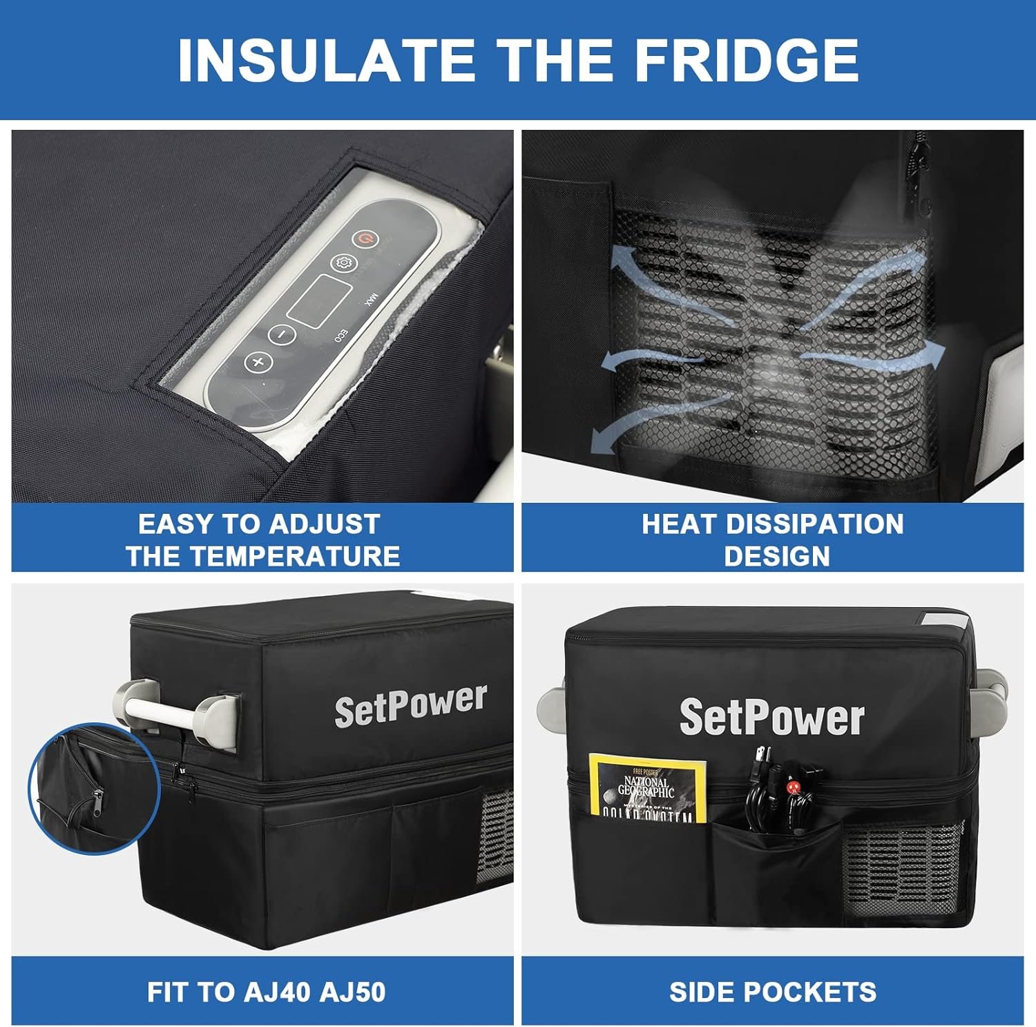 Attention: this insulated cover is suitable for SetPower AJ40 portable refrigerator. It’s a flexible cover and will fit AJ50 if expanded the hidden zipper. FIT TO AJ40 & AJ50.