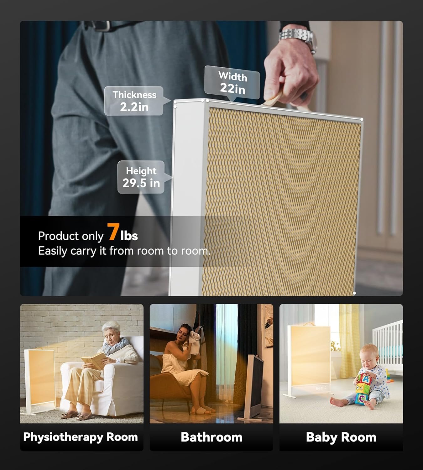 It has characters like no fan, no light, noiseless, energy saving, and multiple protection. Its heating type is far infrared convection, which is good for health. Perfect for physiotherapy room, bedroom, baby room, living room, office, and other.