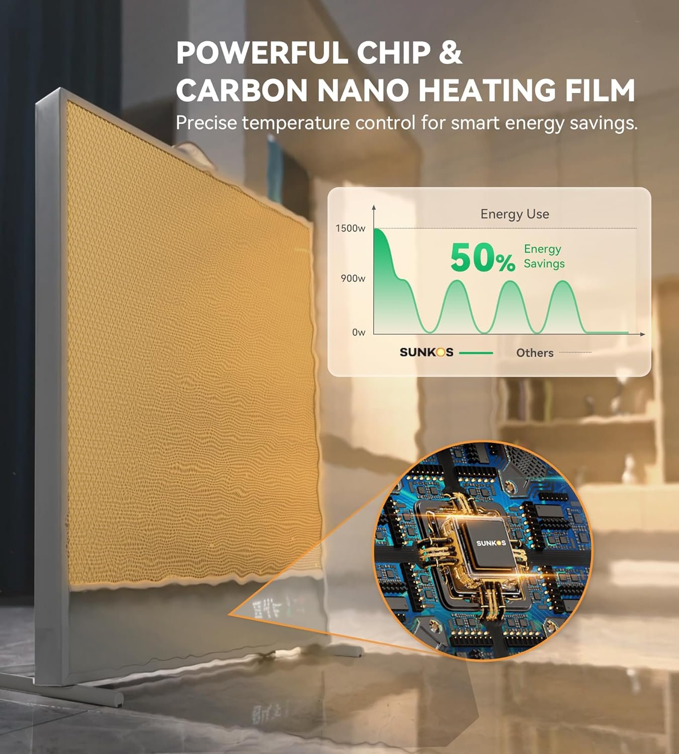 The SUNKOS Space Heater works well in my office and bedroom. It has a slim design, a leather handle that makes it easy to carry, and a nice LED display thatâs easy to read. It heats up quickly and quietly, so it doesnât disturb me while Iâm working or sleeping.The remote is easy to use and has plenty of features, making it convenient to adjust the settings without getting up. Itâs also safe to use around pets since the mesh stays cool to the touch, and it has an automatic shutoff if it tips over or overheats.Overall, it looks good, works efficiently, and is easy to set up. Itâs a solid choice for keeping small spaces warm.