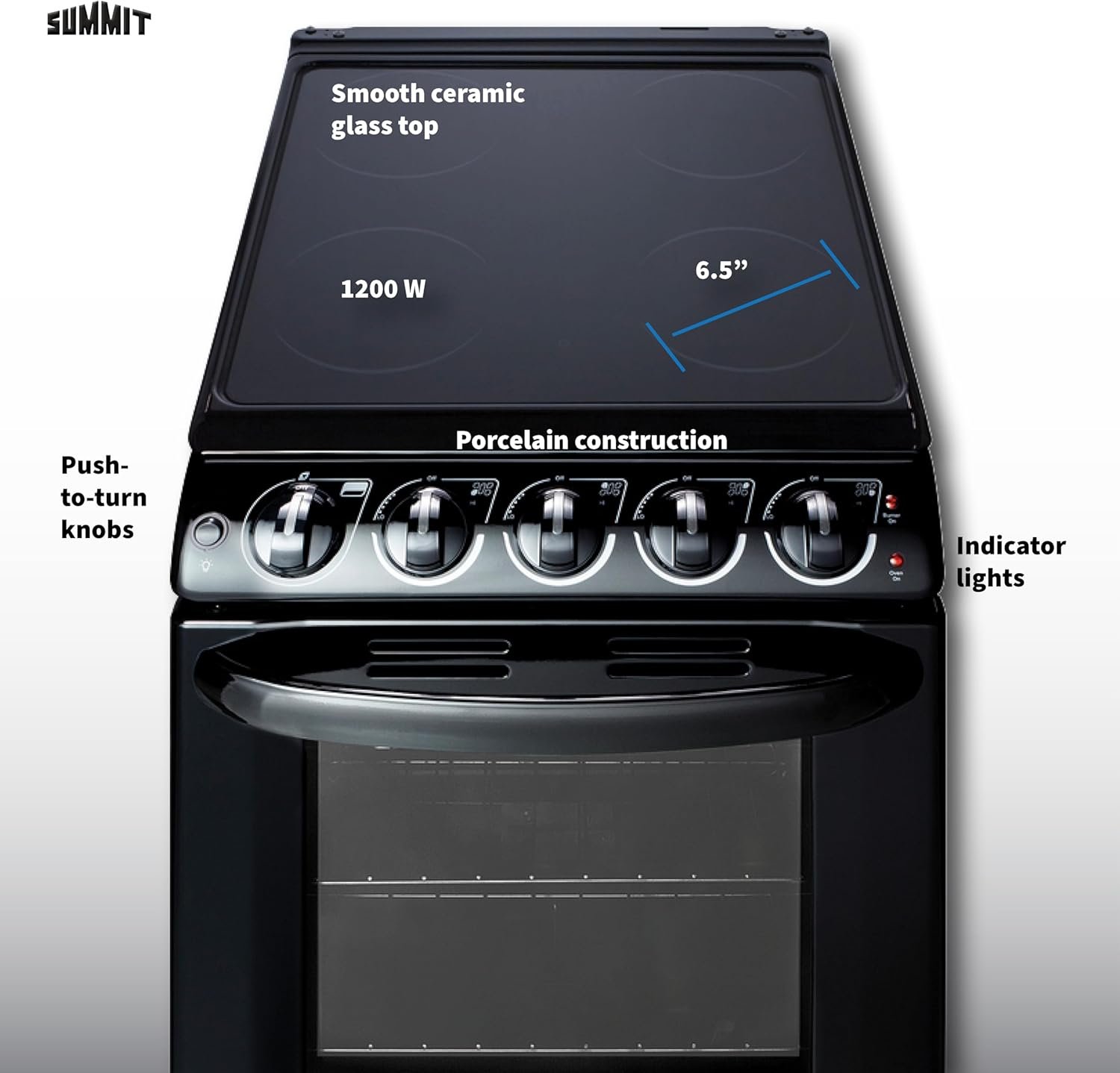 Summit 20” Electric Smooth Top Range, Large 2.3 cu.ft Oven, ADA Complaint, Black- REX2051BRT