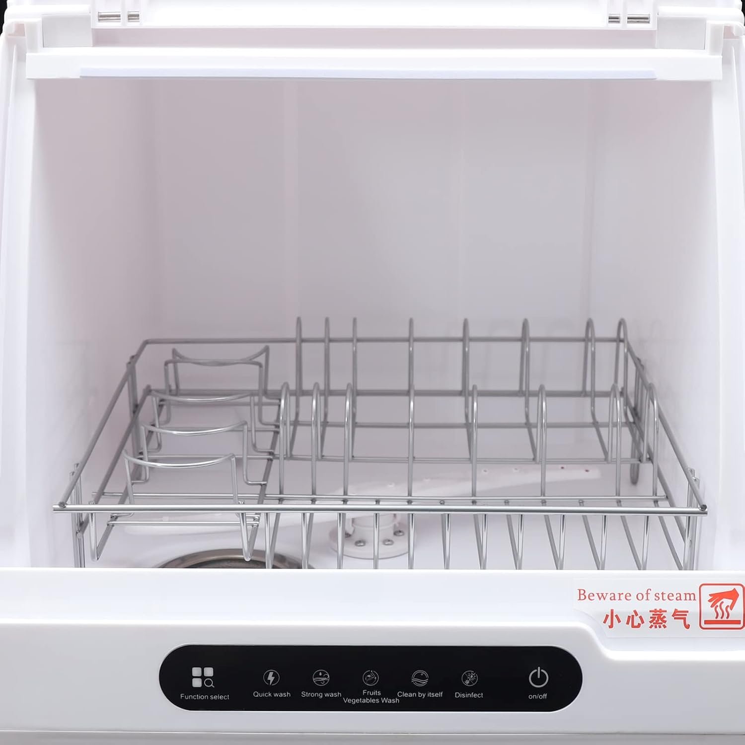 5 WASHING PROGRAMS: You’ll Get Full Size Dishwasher Cleaning In a Countertop Sized Compact Unit That Offers Five Wash Programs – Fast Washing, Strong Washing, Fruit And Vegetable Washing, Self‑Cleaning, And Purification.