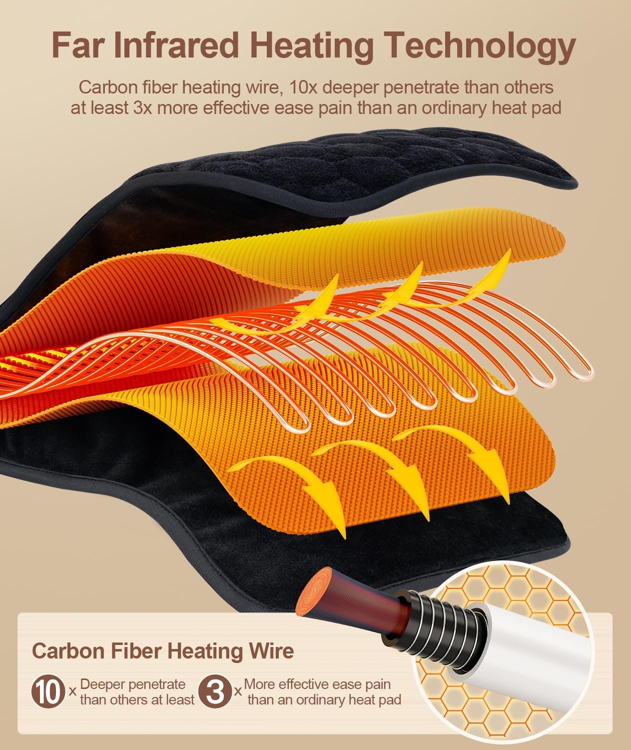 FAR INFRARED HEAT THERAPY: UTK infrared heating pad built-in carbon fiber heating wire that emits far infrared rays that can penetrate body tissues about 4-6 inches, 10 times the penetration depth of a traditional heat pad. It also provides at least 3x more relief to your body’s discomfort in a short time