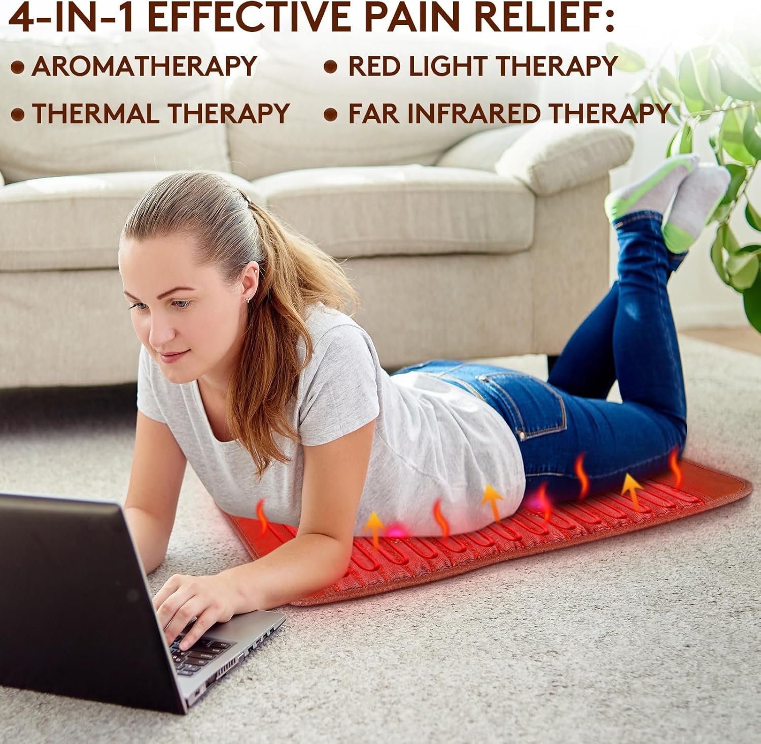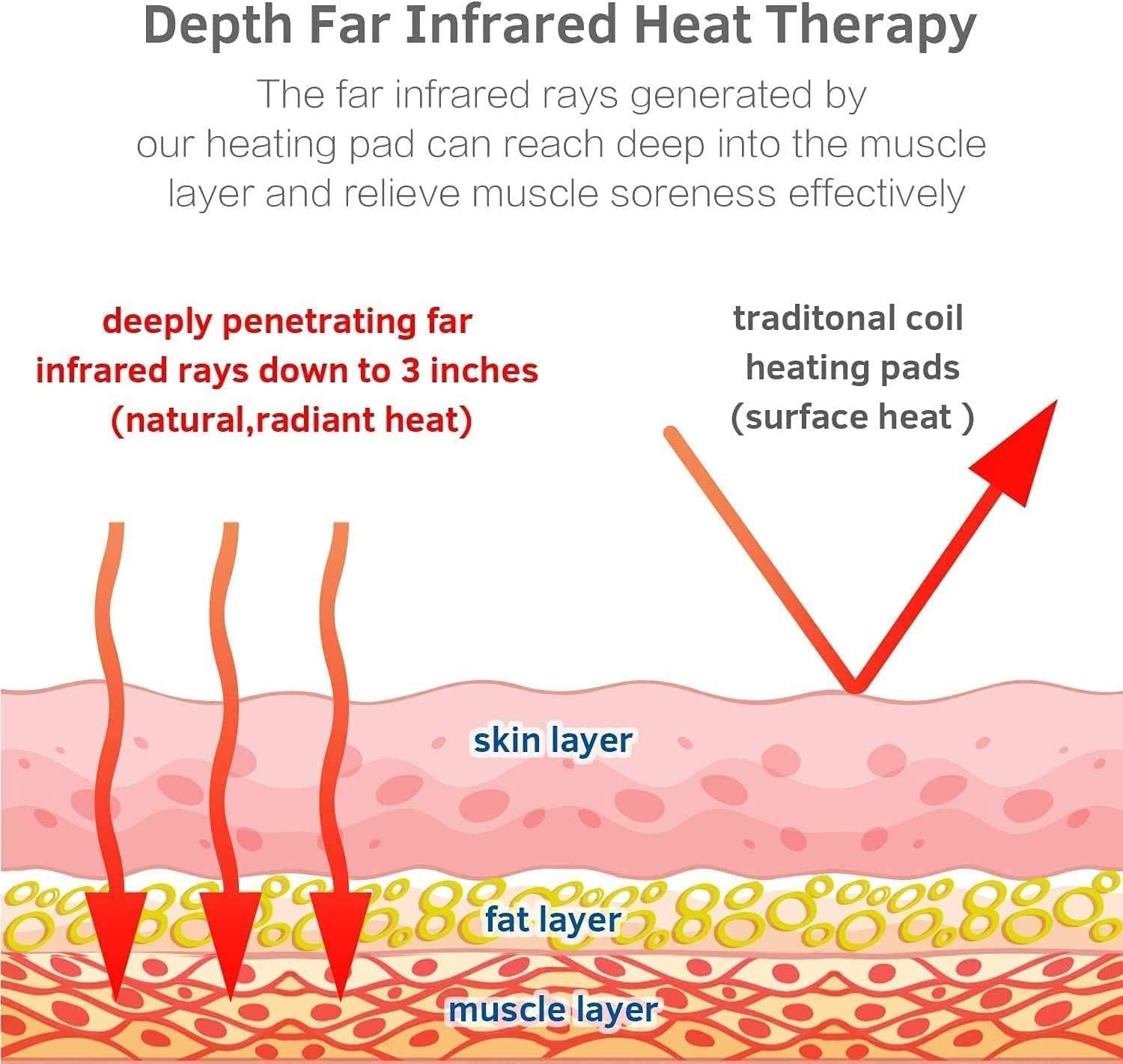 PREMIUM INFRARED HEATING PAD: The 6.85 pound heating pad combines far-infrared rays, tourmaline beads and red light, the 3-in-1 function greatly increases the product’s therapeutic effect, which can easily relieve the pain caused by back/lumbar muscle aches and stiffness