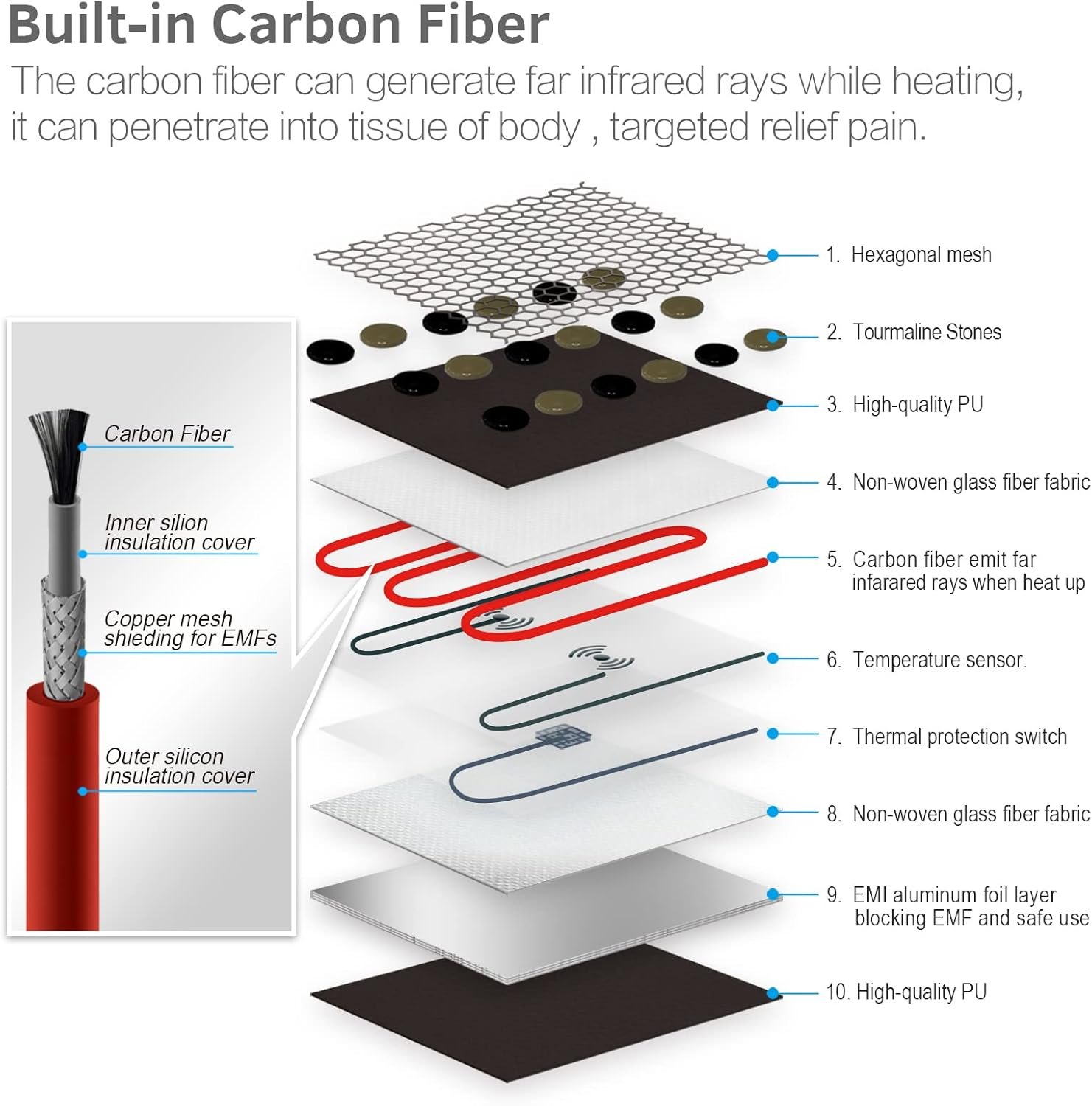 【MAX TEMP 159°F HOT THERAPY】— Adjustable temperature from 103°F to 159°F by a 1° increment. Many electric heating pads max out around 130°F only, our infrared heating pad can provide the more complete and comfortable experience of back or full-body pain relief.
