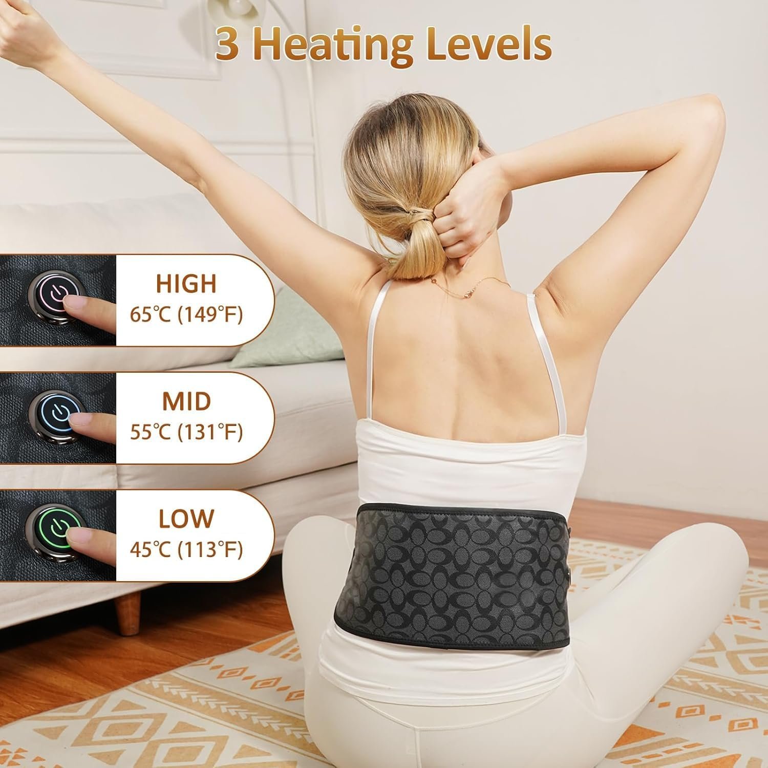 3 Heat Settings–With three adjustable heat settings, you can tailor the temperature to your preference. Whether you need a gentle warm-up or intense heat therapy, our heating belt has you covered. Choose from low, medium, and high settings for personalized comfort.