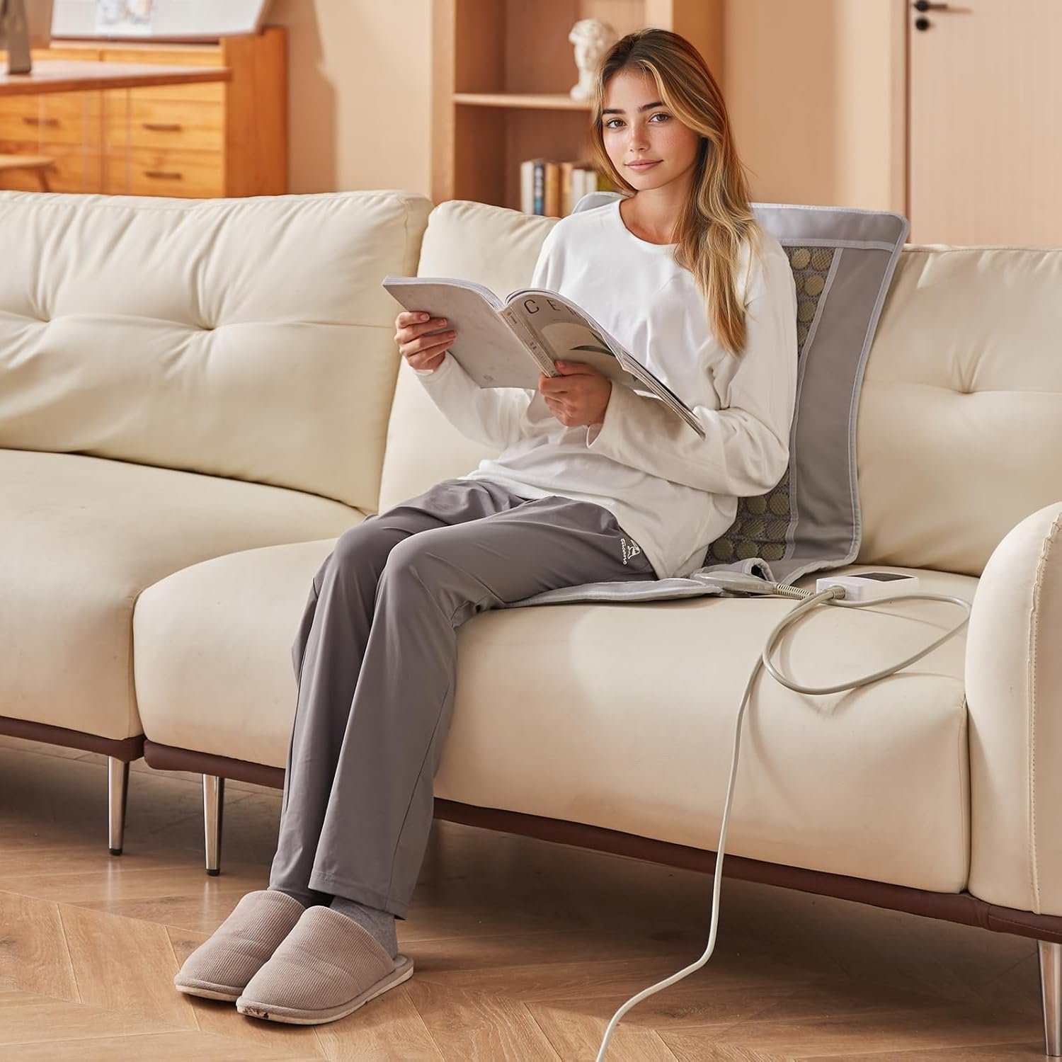Our heating pad for back pain relief is built in efficient carbon fiber heating element provides stable and consistent heat therapy. It heats up quickly, evenly distributing warmth throughout your body to help with full relaxation.