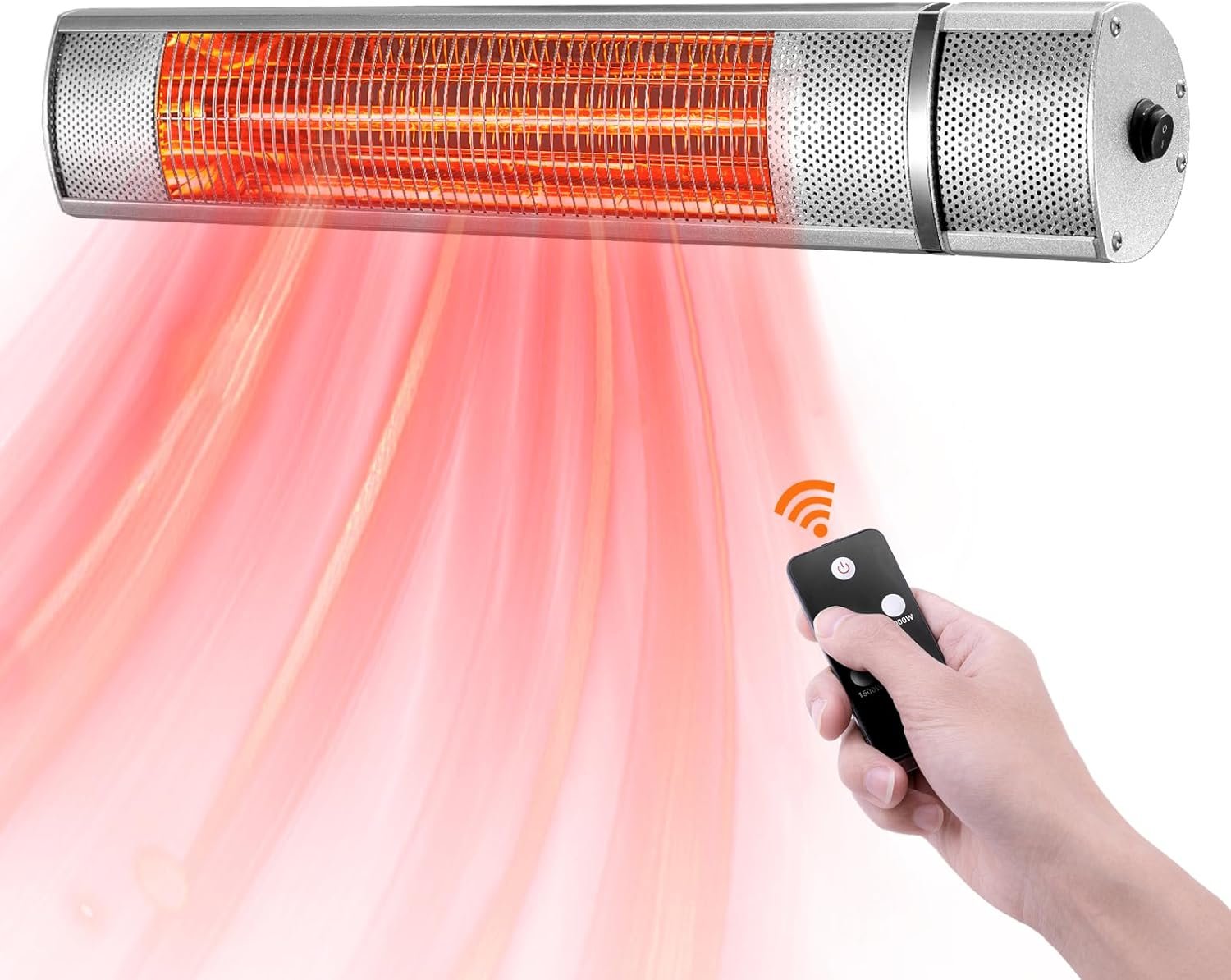 Wall-Mounted Patio Heater for Outdoor Use Electric Infrared Heaters 1500w with 3 Level,Waterproof Space Garage Heater, 3s Heating Remote Control, Silver