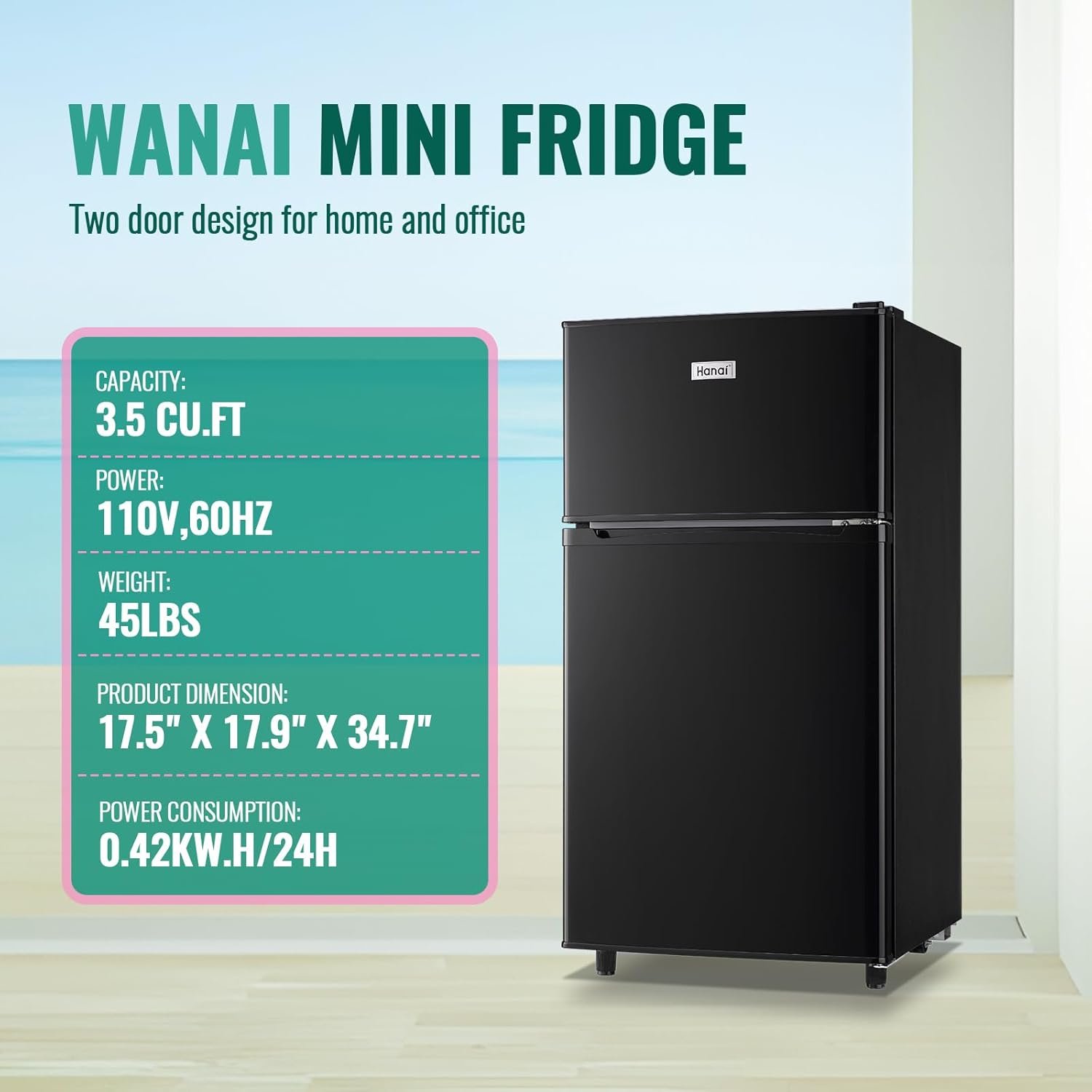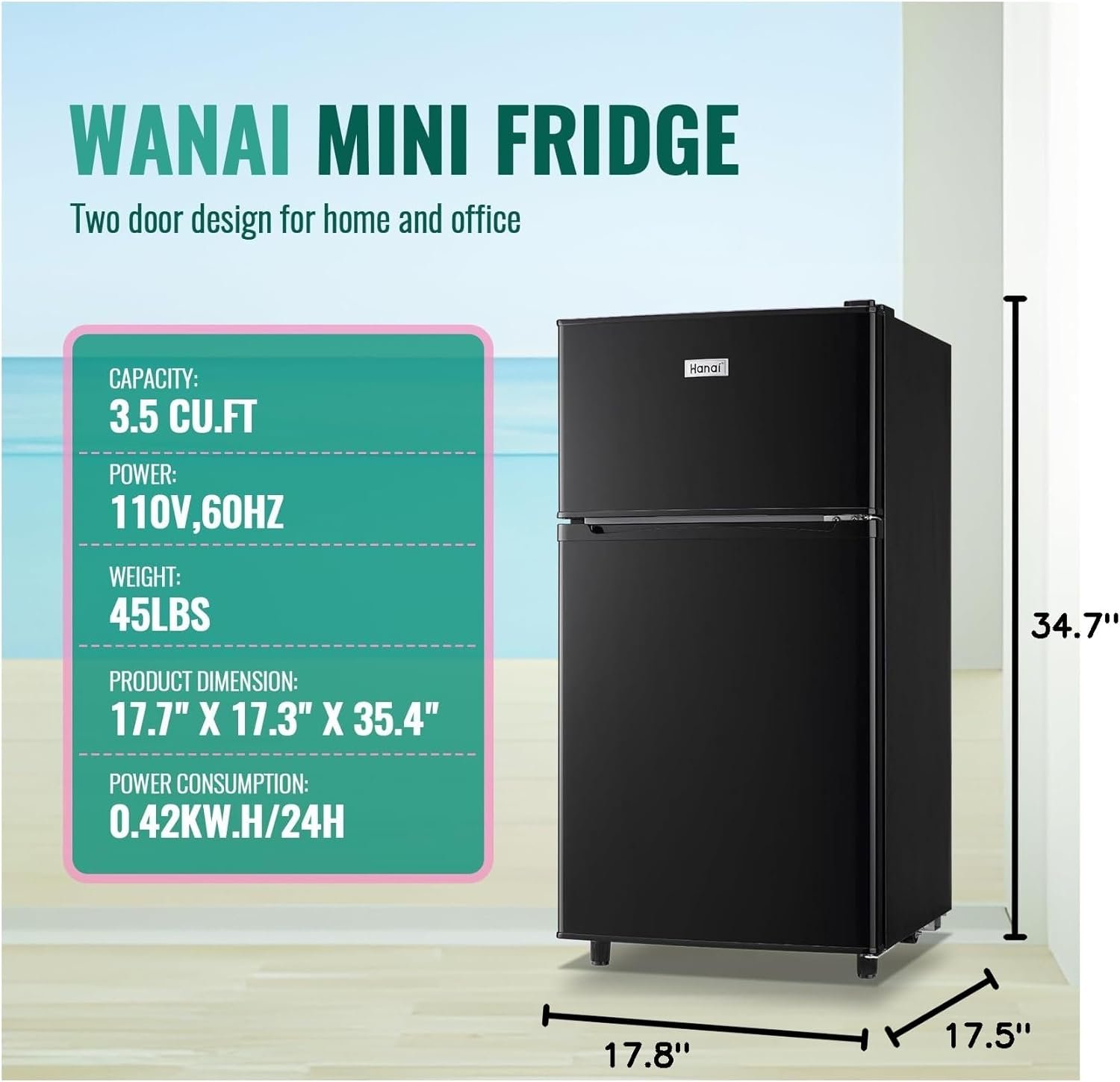 Compact and Convenient: Measuring only 17.5 X 17.9 X 34.7 inches, this mini fridge is perfect for those tight on space, suit for dorms, offices and college. With 2 adjustable feet and 2 wheels, you can easily move and adjust the balance as needed