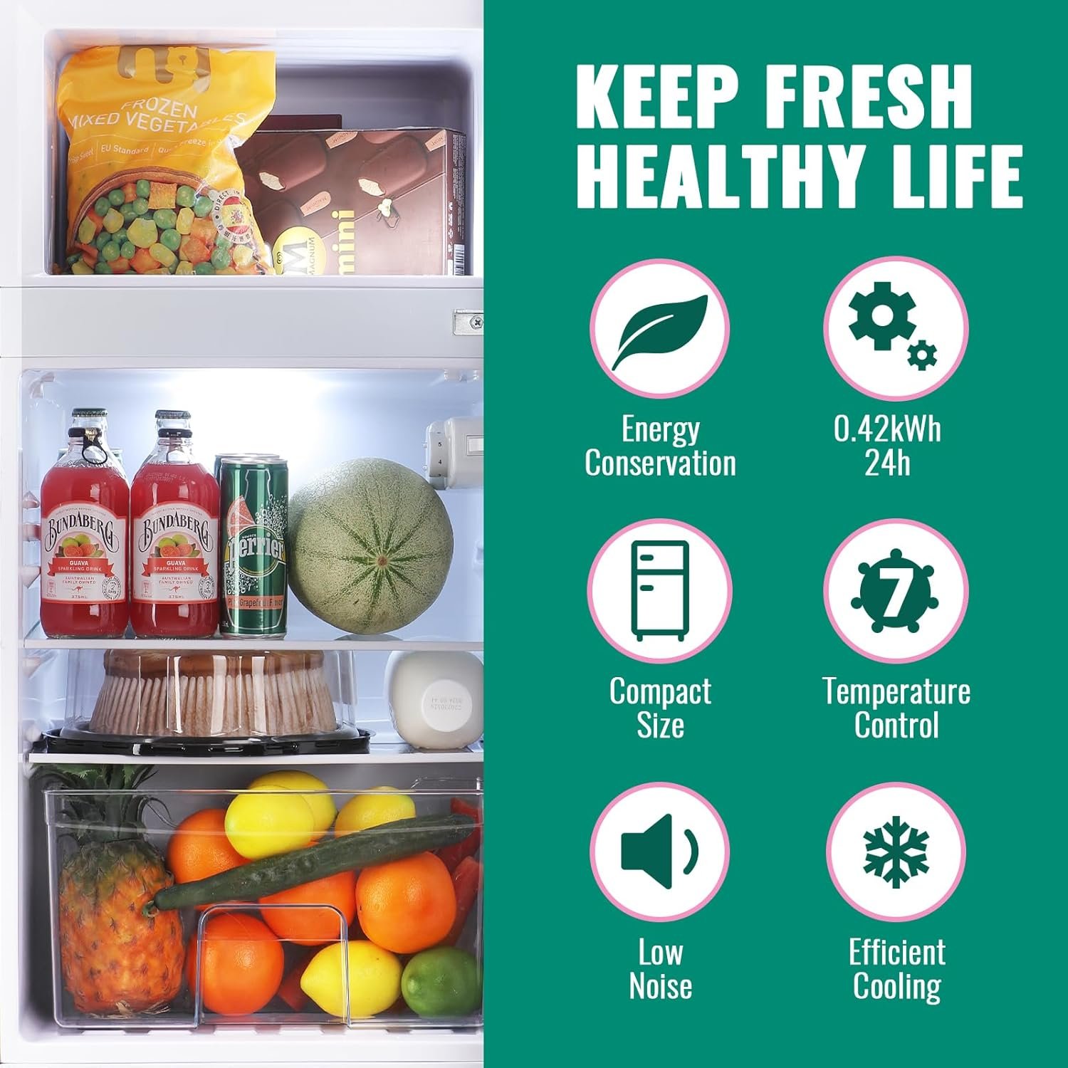 Efficient Cooling and quiet operation: Our fridge is powered by a reliable compressor cooling system, which prolonged freshness of food. It operates efficiently and quietly, making it perfect for shared living spaces or quiet environments.