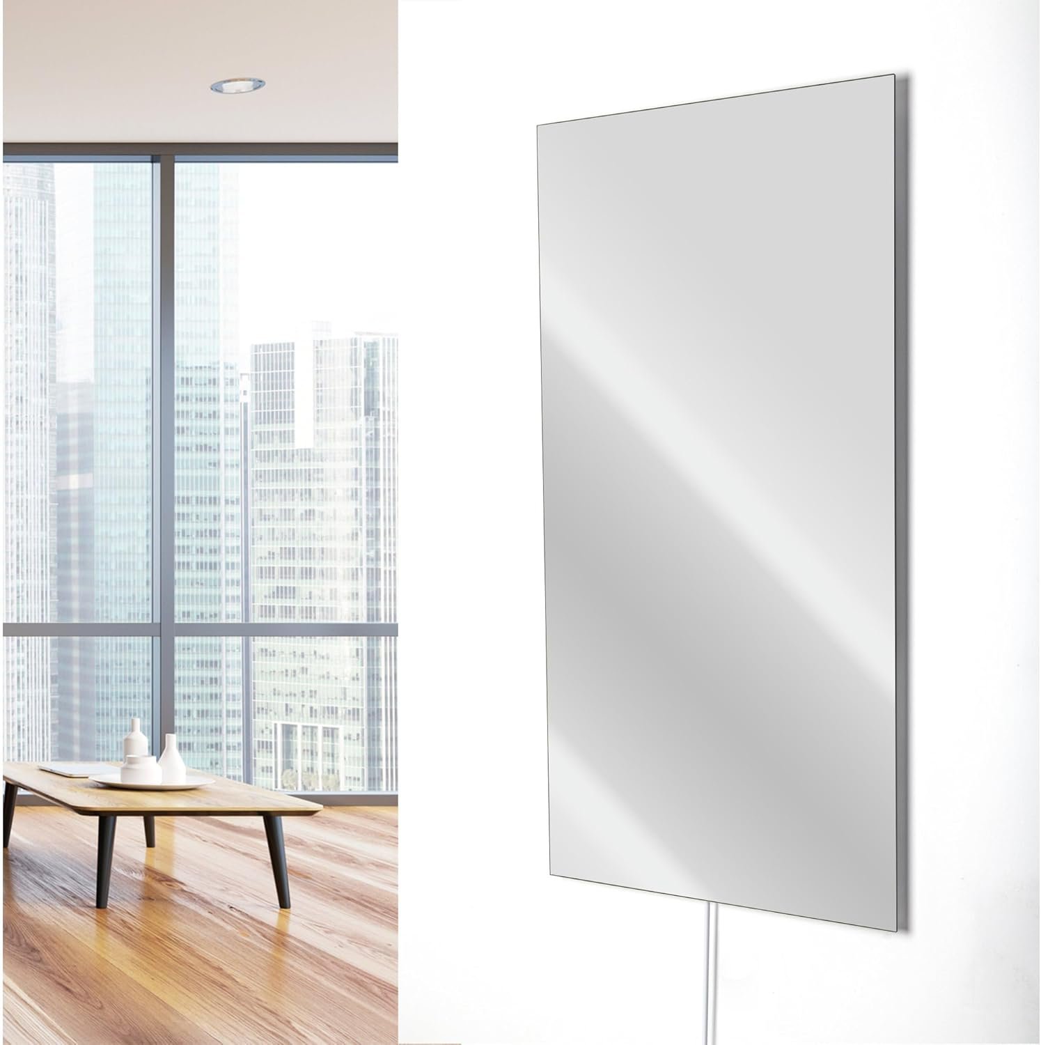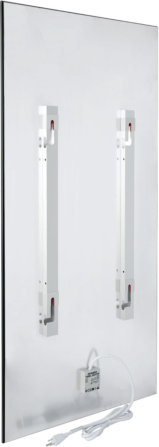 The Ember Mirror radiant panel looks just like an ordinary mirror. Yet, looks can be deceiving. This 3.9- by 2-foot mirror emits 800 watts of heat so that it can heat a room and even function as a heating source/mirror defogger in bathrooms. Furthermore, mount it vertically in a dry area of your bathroom, accessorize it with a towel bar, and you have a beautiful, fully functional towel warmer. Of course, the panel can be mounted to a wall in any room of your home to provide comforting, even heat. Furthermore, unlike convection heating, this radiant panel does not circulate dust or other allergens into the air. It also is unique in that it delivers heat in the most energy efficient way possible. Ember radiant panels have one of the highest possible efficiency rates and consume the least amount of energy possible*. These panels are also dual connection, meaning they can be used “as is” to plug into a standard 120 VAC outlet or they can be modified by a licensed electrician to have a hardwired 120 VAC electrical connection. Note: Towel bars must be purchased separately. * Infrapower Manufacturing Ltd.