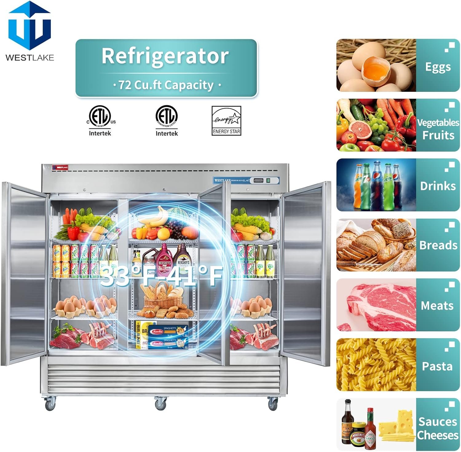 Comprehensive accreditation: ETL certified, meeting ETL SAFETY, ETL SANITATION. This ensures compliance with strict industry standards for safety, sanitation, and energy efficiency, making it an excellent choice for restaurants and commercial environments