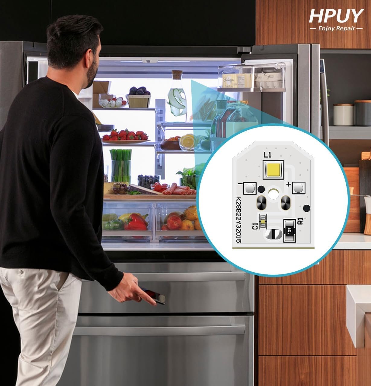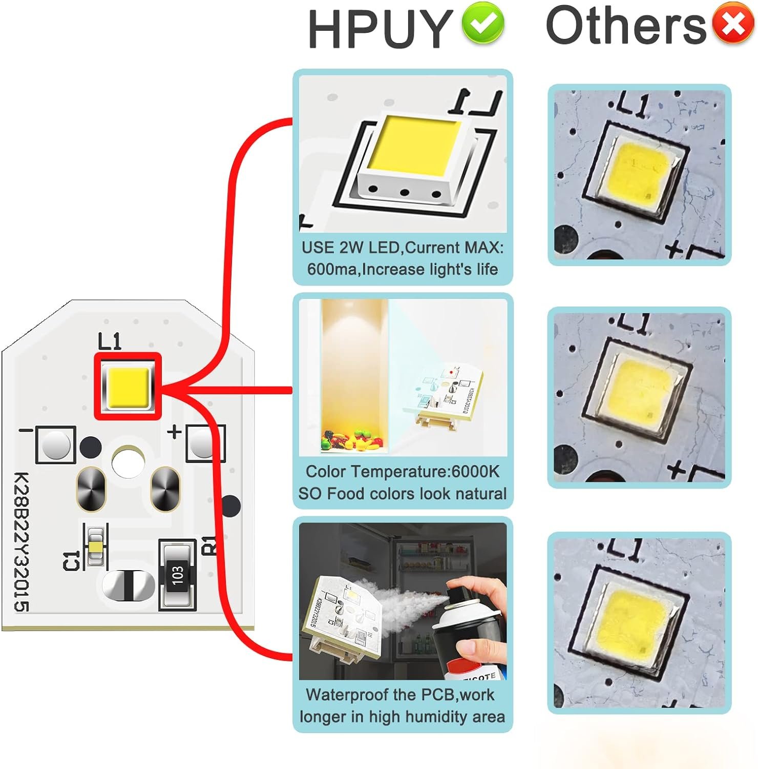 Premium Quality and Center Reinforcement Design:The HPUY WR55X11132 WR55X25754 USE 2W LED and apply for waterproof treatment to make your refrigerator light work better than others. At the same time, aiming at the problem that the center part is easy to crush, the design of the product has been improved with a reinforced washer added at the center position to make the product more durable and have long-term use