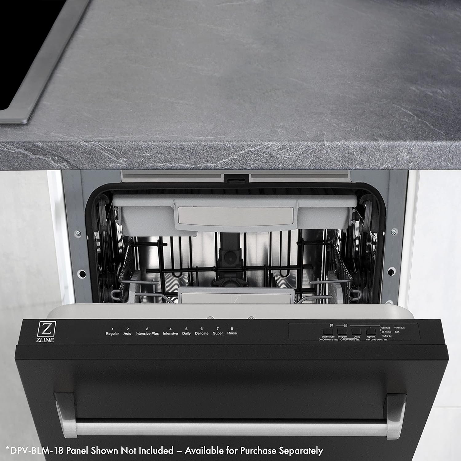 ZLINE 18″ Tallac Series 3rd Rack Top Control Dishwasher in Custom Panel Ready with Stainless Steel Tub, 51dBa (DWV-18) (Pannel Ready)
