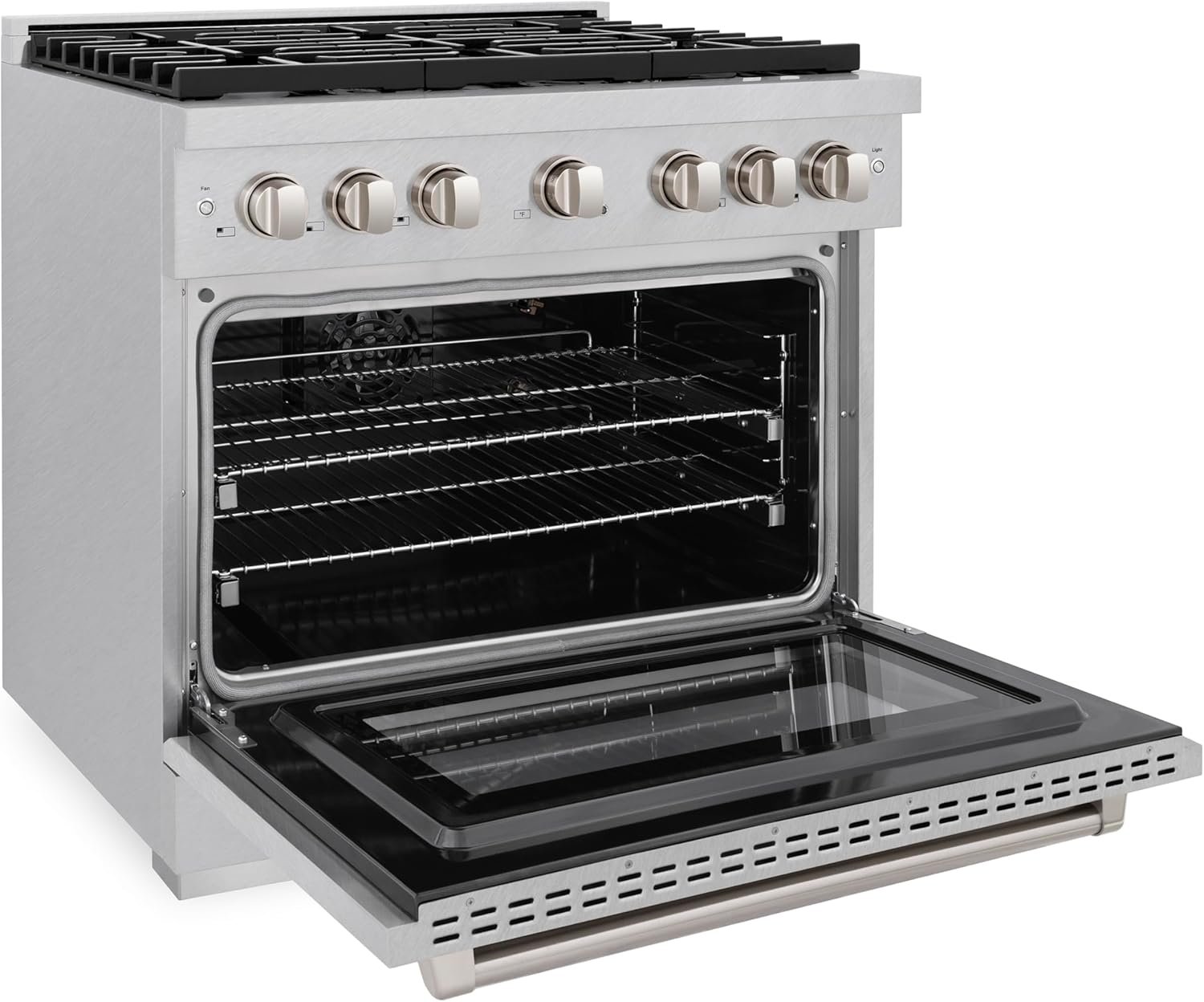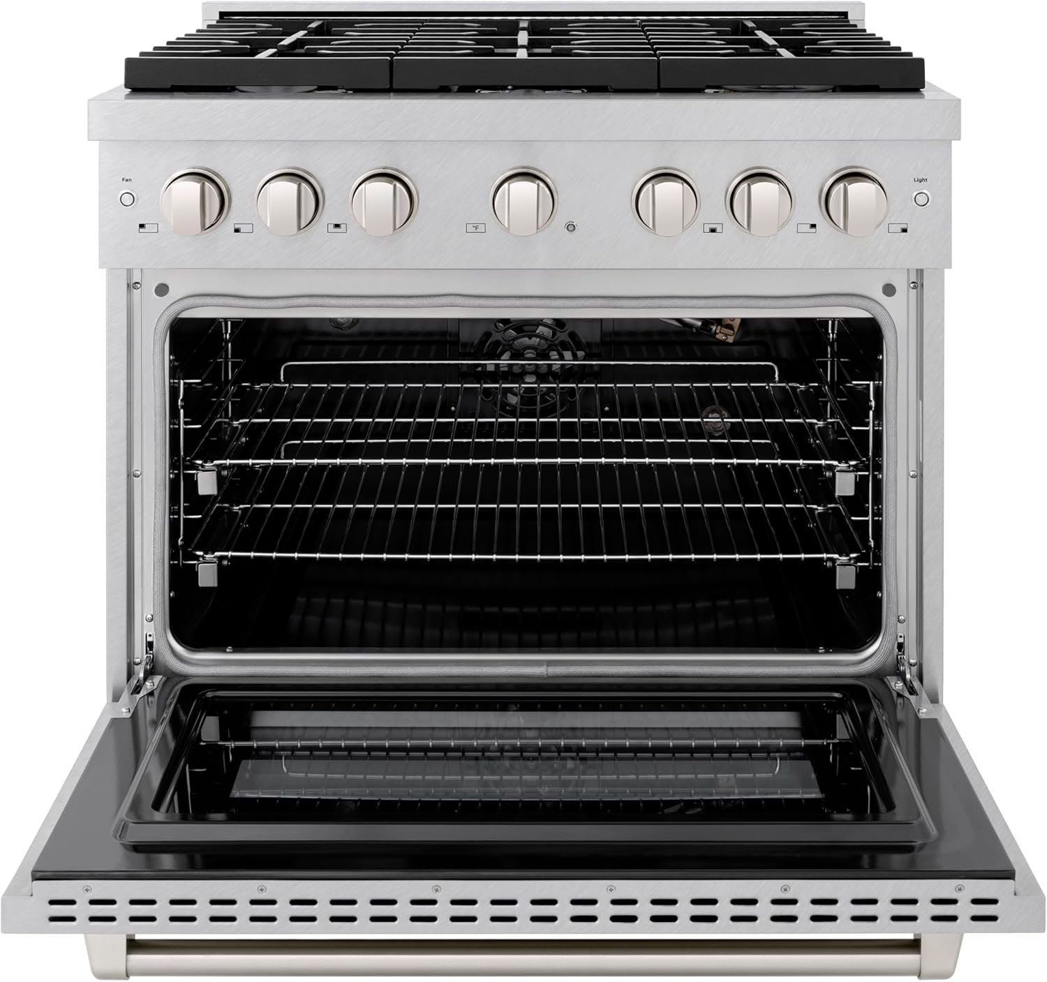 Luxury isnβt meant to be desired – itβs meant to be attainable. The ZLINE 36 in. 5.2 cu. ft. Paramount Gas Range with Convection Gas Oven in DuraSnow Stainless Steel with 6 Brass Burners (SGRS-BR-36) features a versatile gas cooktop with 6 Italian-made sealed brass burners, a high-performing gas convection oven, enhanced cast iron grates, and a Horizon oven door window design allowing you to master every meal. With a modern, timeless style and refined functionality, ZLINE Paramount Gas Ranges are masterfully crafted to deliver an elevated culinary experience.