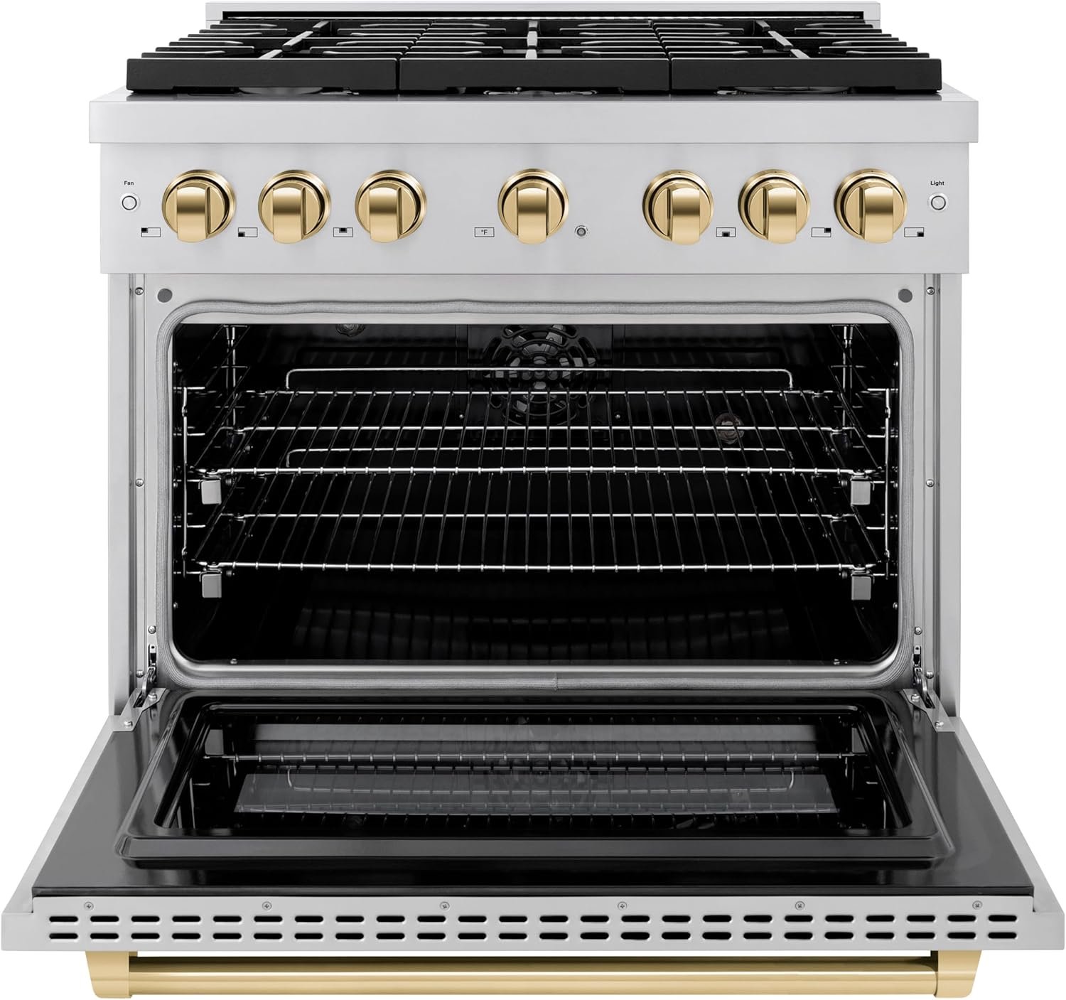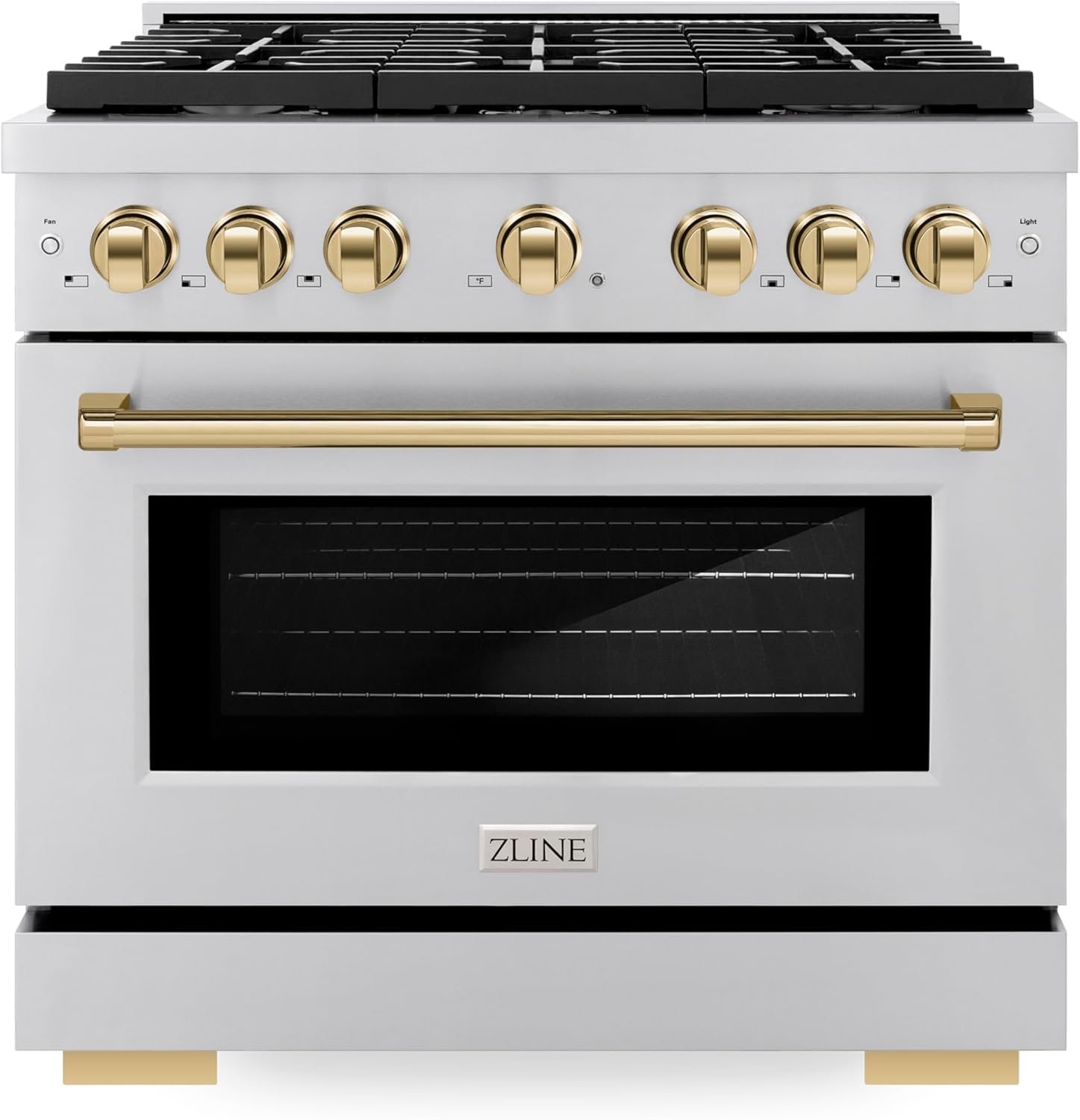 Luxury isn’t meant to be desired – it’s meant to be attainable. The ZLINE Autograph Edition 36 in. 5.2 cu. ft. Paramount Dual Fuel Range with 6 Burner Gas Cooktop and Electric Convection Oven in Stainless Steel with Polished Gold Accents (SDRZ-36-G) combines combines the versatility of a gas cooktop with 6 Italian-made auto-reignition burners, an electric convection oven with digital thermostat technology, enhanced cast iron grates, a Horizon oven door window design, and elegant polished gold knobs and handle allowing you to master every meal. With a modern, timeless style and refined functionality, ZLINE Paramount Dual Fuel Ranges are masterfully crafted to deliver an elevated culinary experience.
