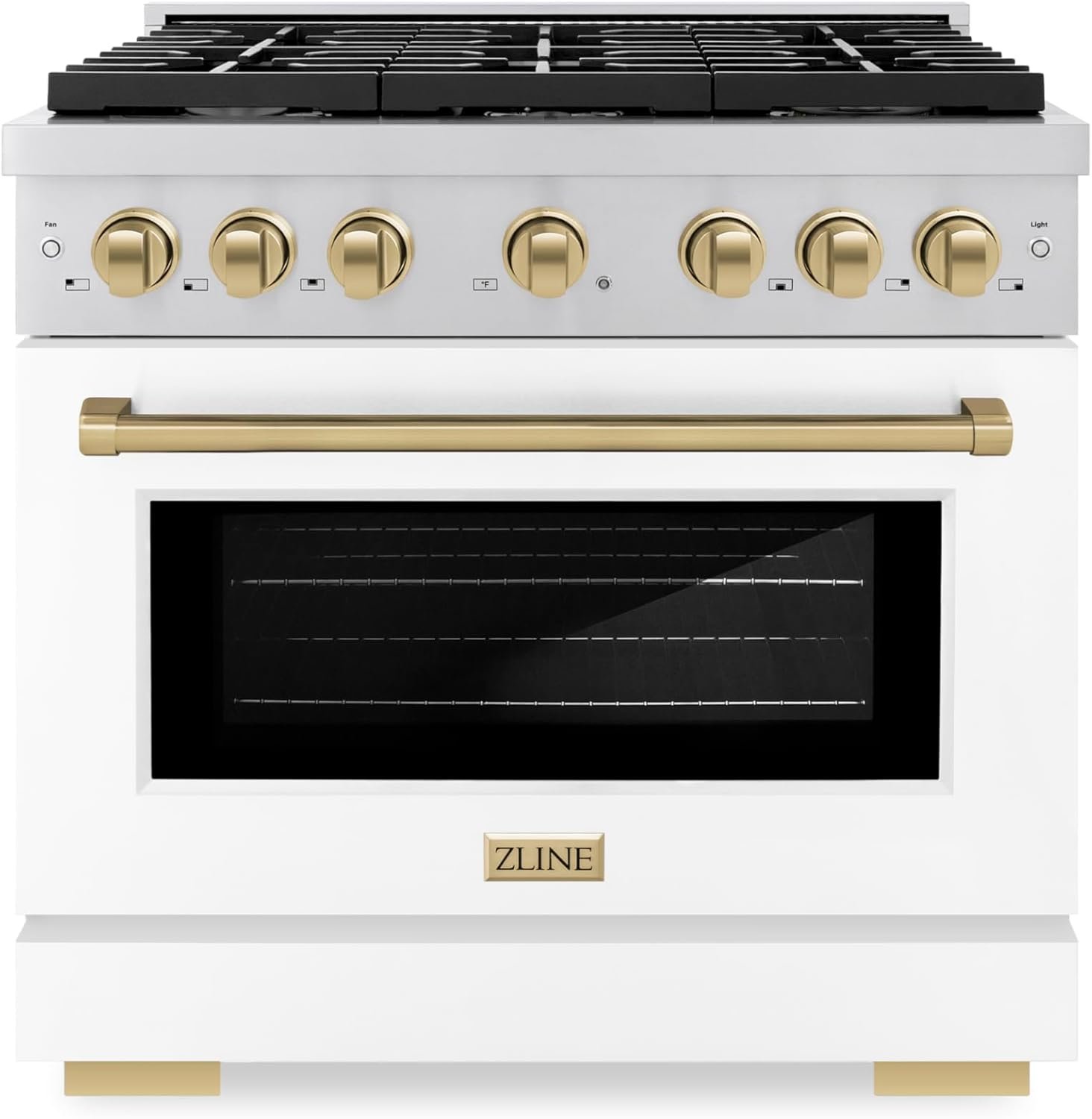 Luxury isn’t meant to be desired – it’s meant to be attainable. The ZLINE Autograph Edition 36 in. 5.2 cu. ft. Paramount Gas Range with 6 Burner Cooktop and Convection Gas Oven in Stainless Steel with White Matte Door and Champagne Bronze Accents (SGRZ-WM-36-CB) features a versatile gas cooktop with 6 Italian-made auto-reignition burners, a high-performing gas convection oven, enhanced cast iron grates, a beautiful white matte door with a Horizon window design, and elegant champagne bronze knobs and handle allowing you to master every meal. With a modern, timeless style and refined functionality, ZLINE Paramount Gas Ranges are masterfully crafted to deliver an elevated culinary experience.