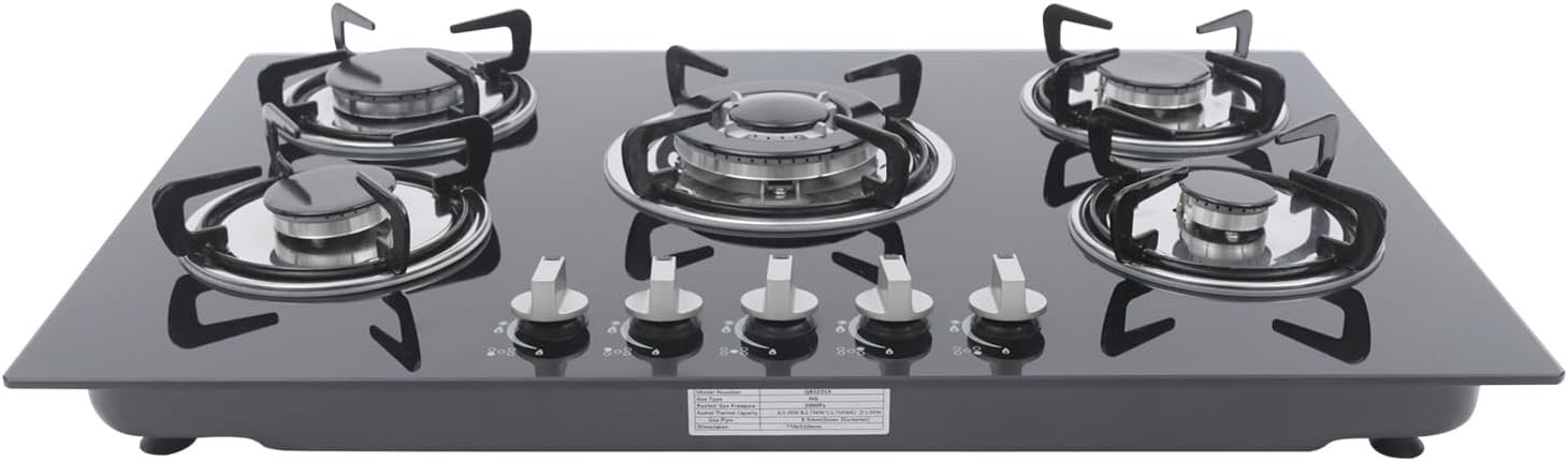 【EASY CLEANING】- The five-burner natural gas stove is equipped with a tempered polished glass surface so that you can clean it without much effort.