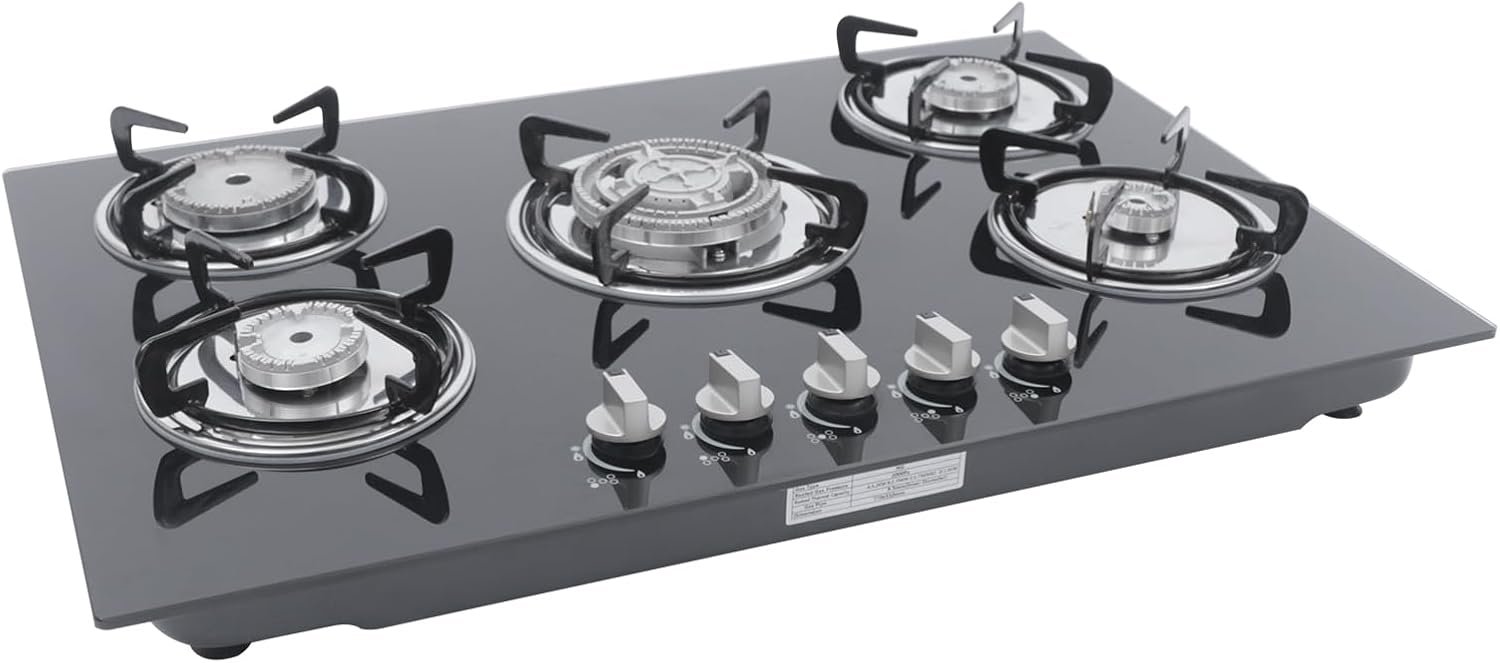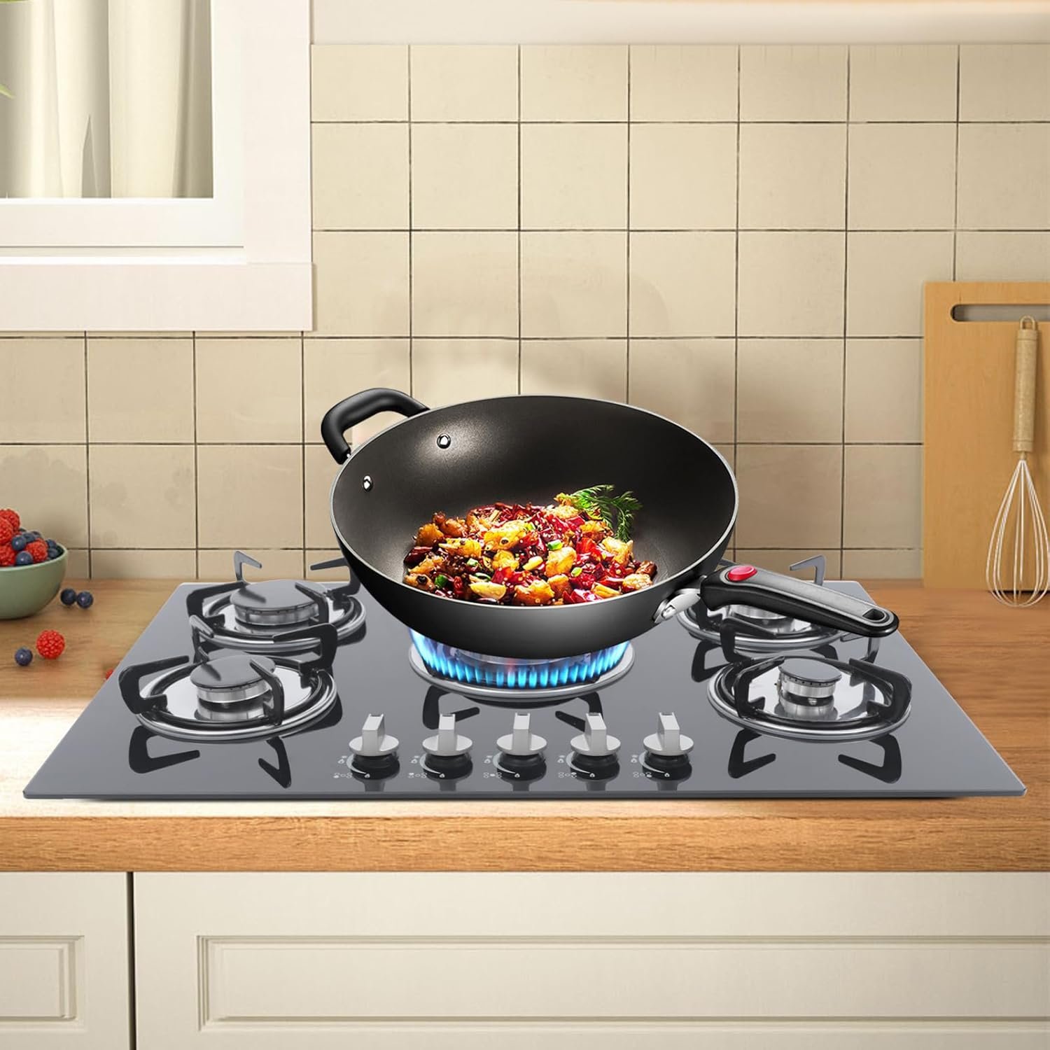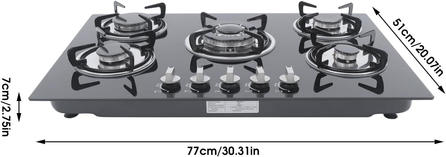 🔥【CLEAN AND EFFORT SAVING】:The five burner natural gas cooktop features a tempered and polished glass surface for effortless cleaning.